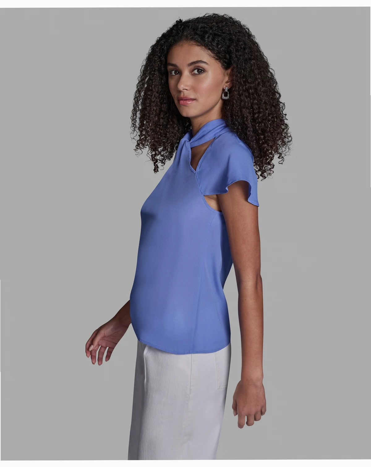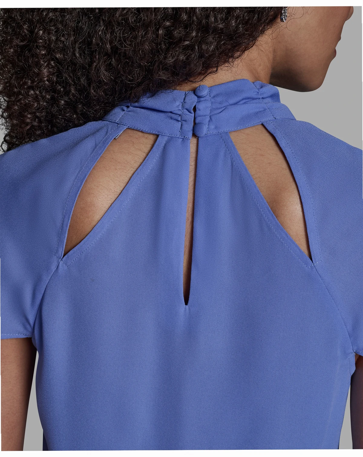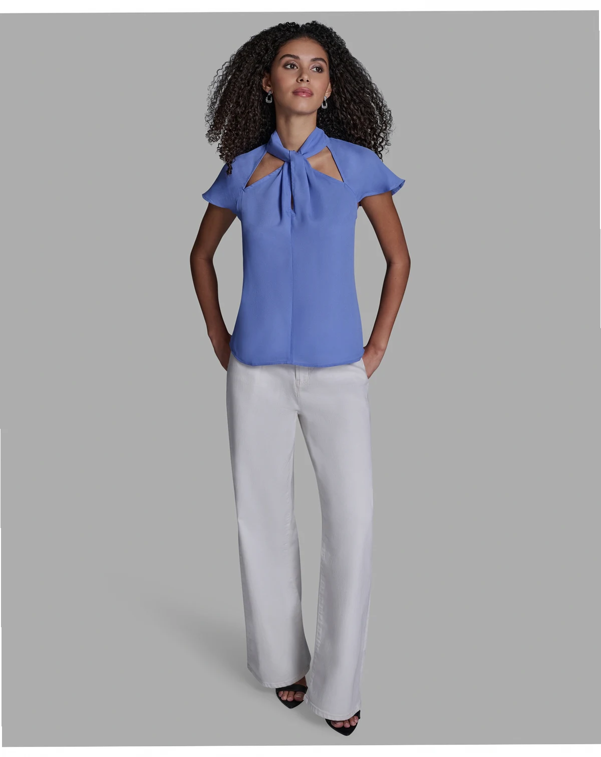 Make a modern statement with this short-sleeved top from BCBG. A center back keyhole with a button adds a unique touch.