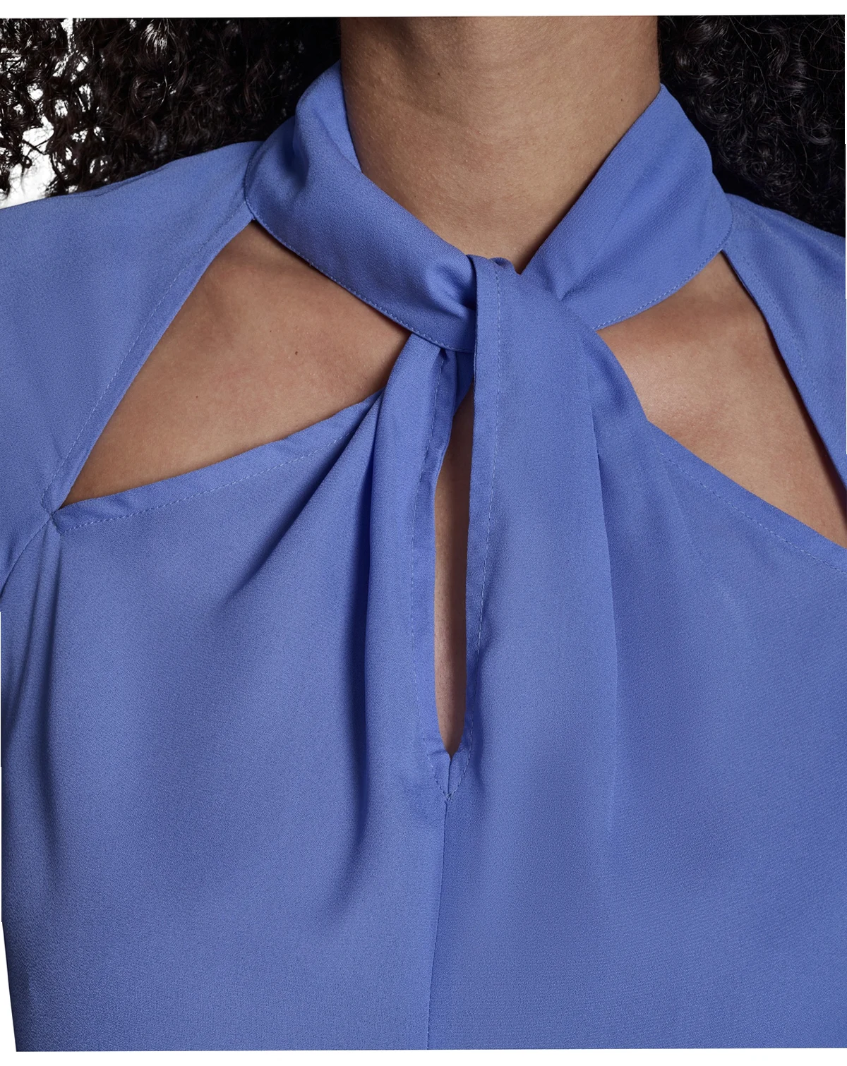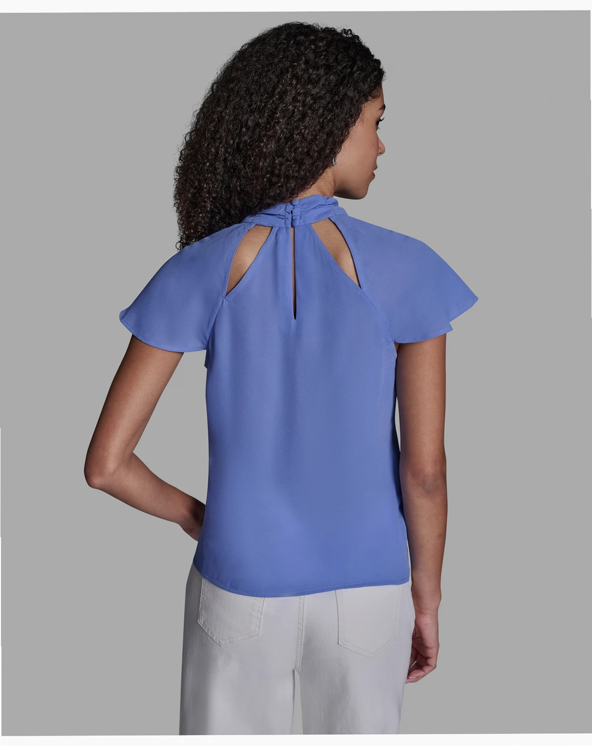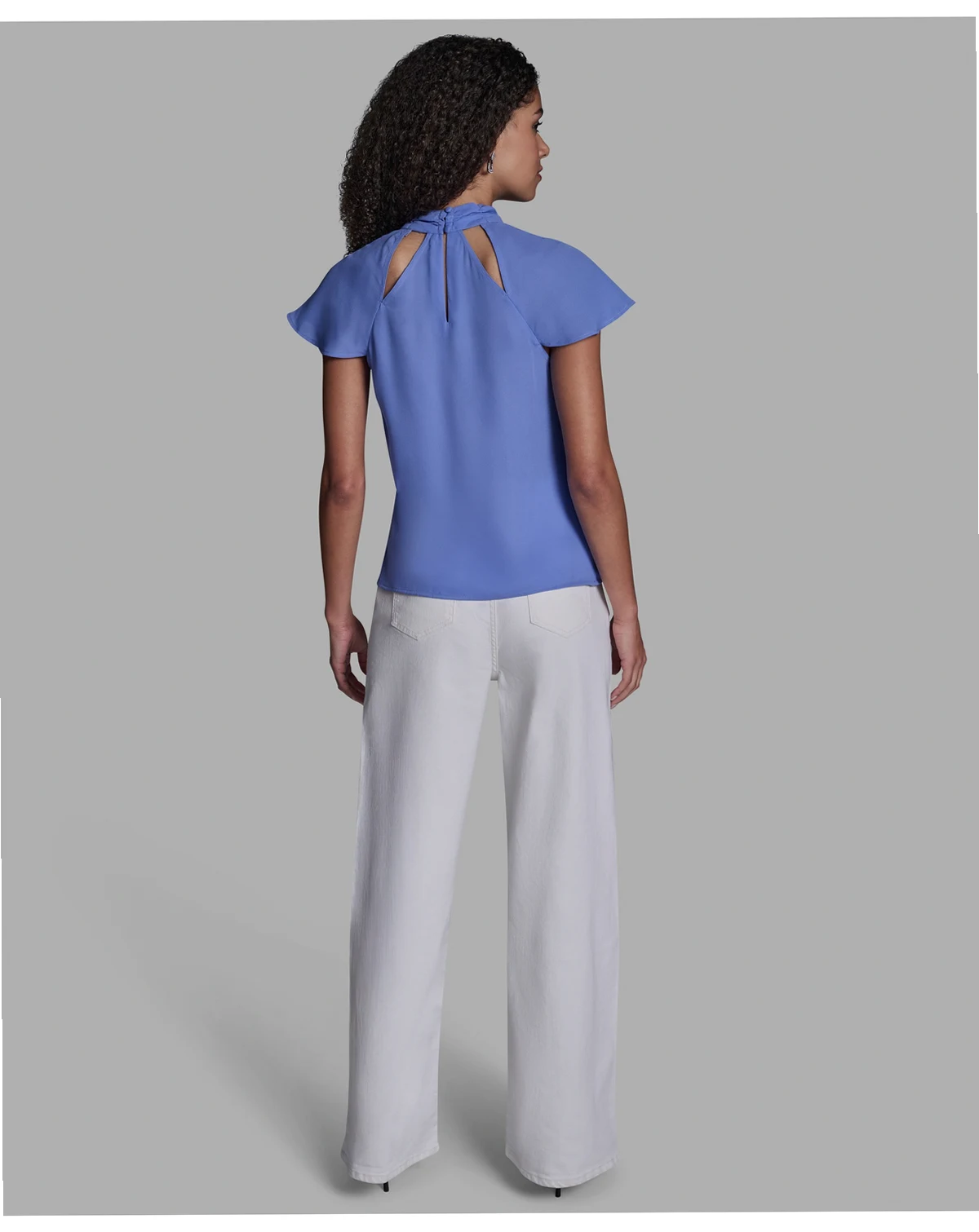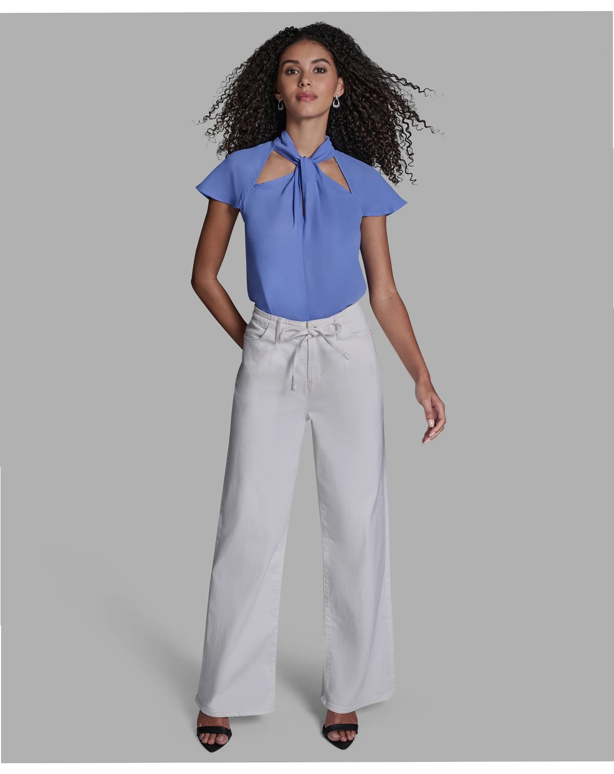 Make a modern statement with this short-sleeved top from BCBG. A center back keyhole with a button adds a unique touch.