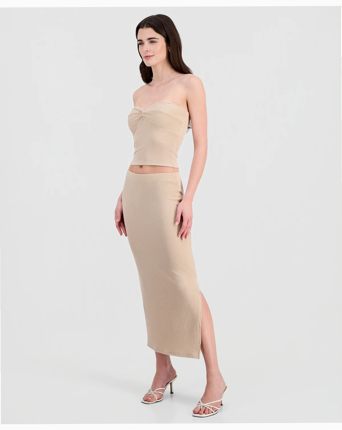 Madden Girl puts a twist on a classic tube top with this cool textured design, a romantic sweetheart-neck style that easily pulls on with a strapless silhouette.