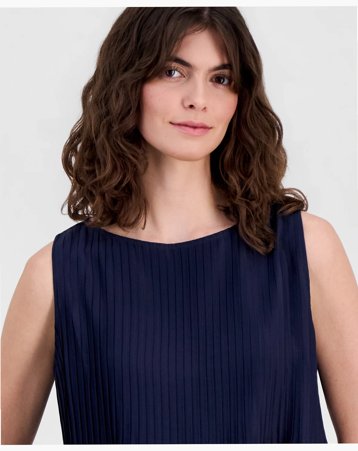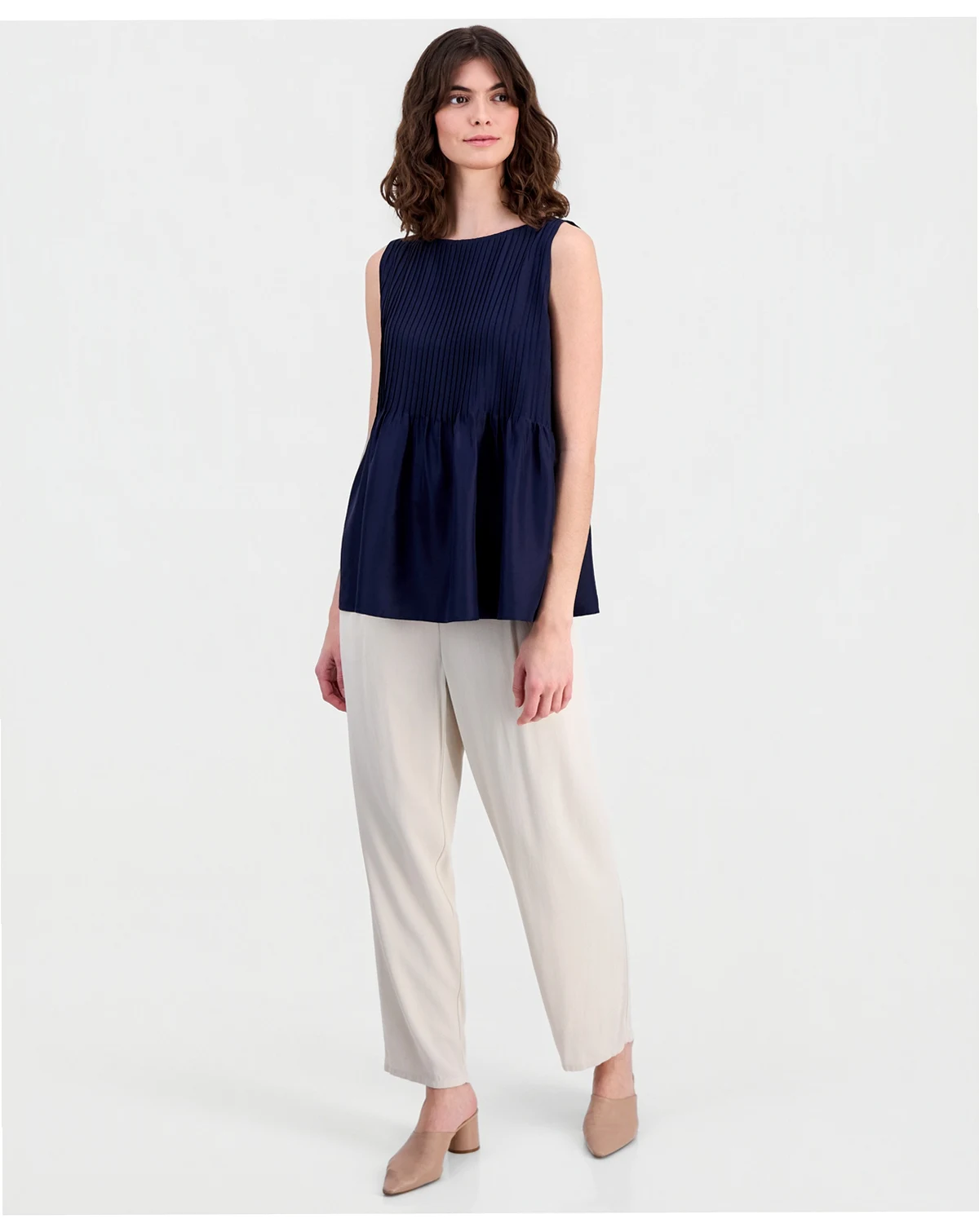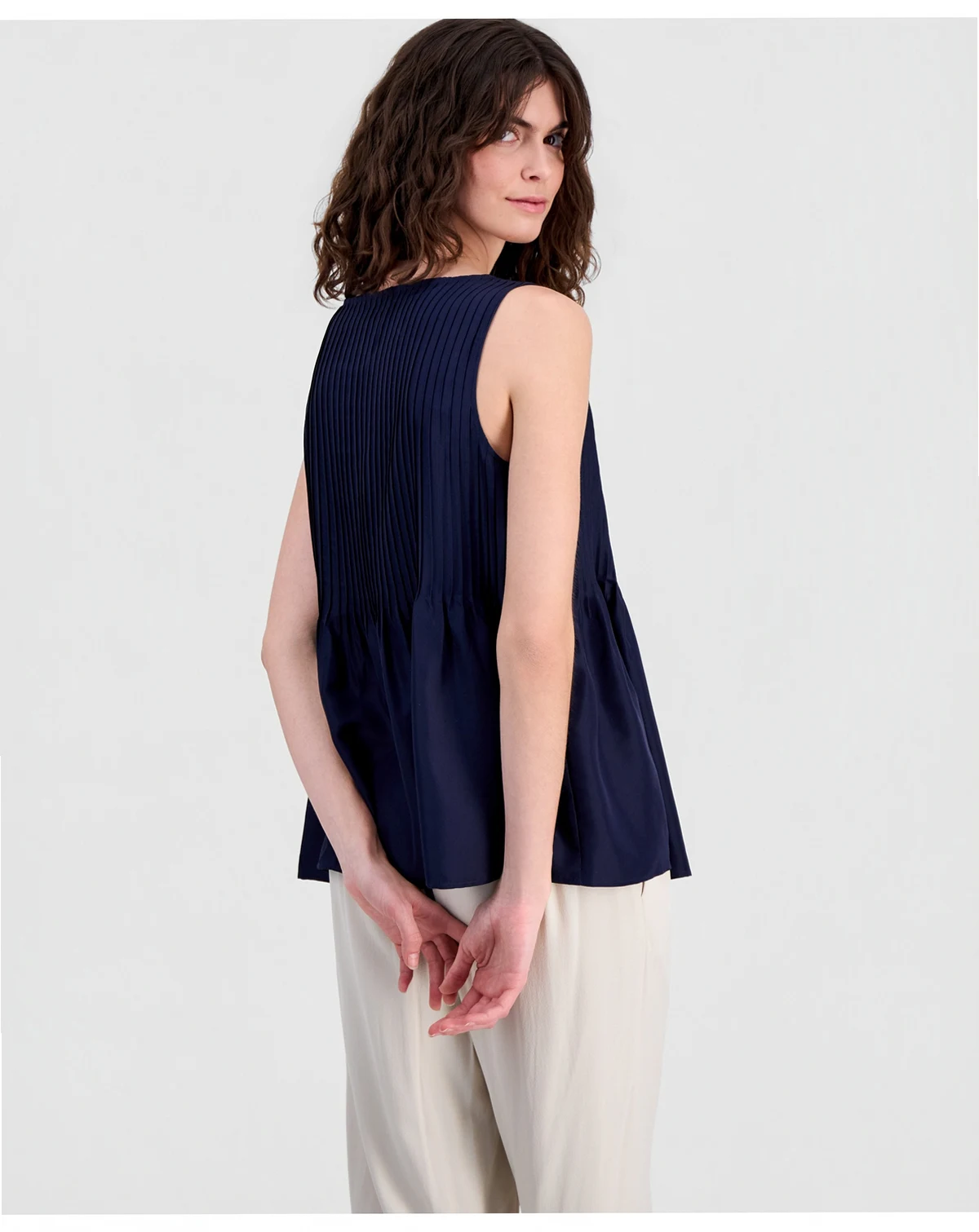 Eileen Fisher brings you elevated basics that turn simplicity into a statement, like this polished silk blouse, a sleeveless silhouette accented with dimensional pleats and subtle sheen.