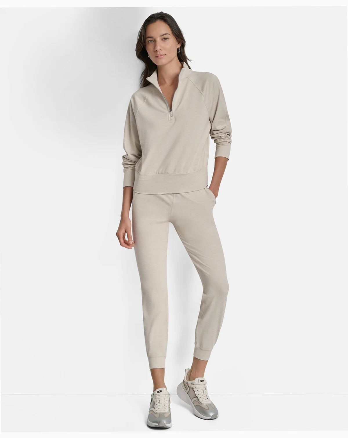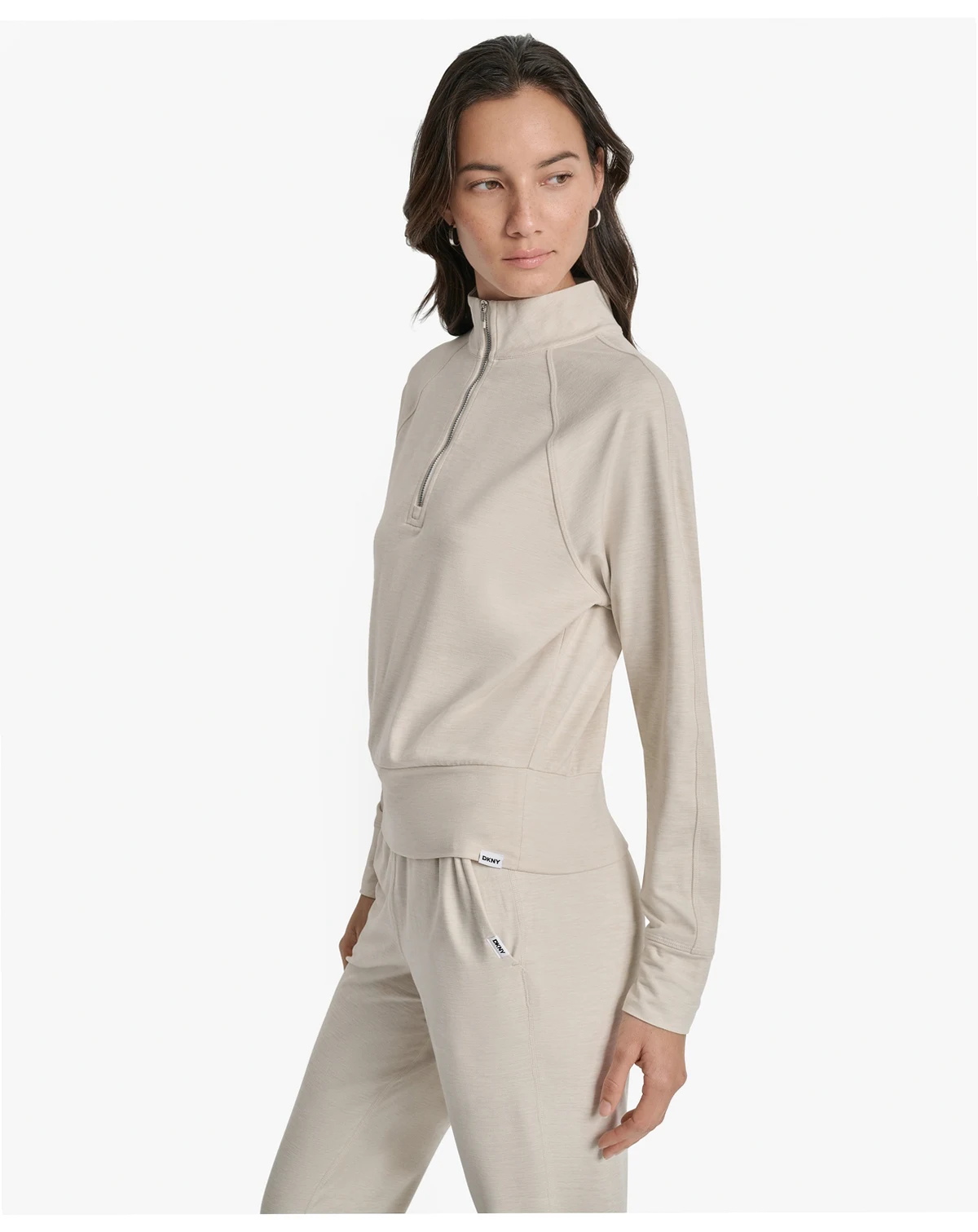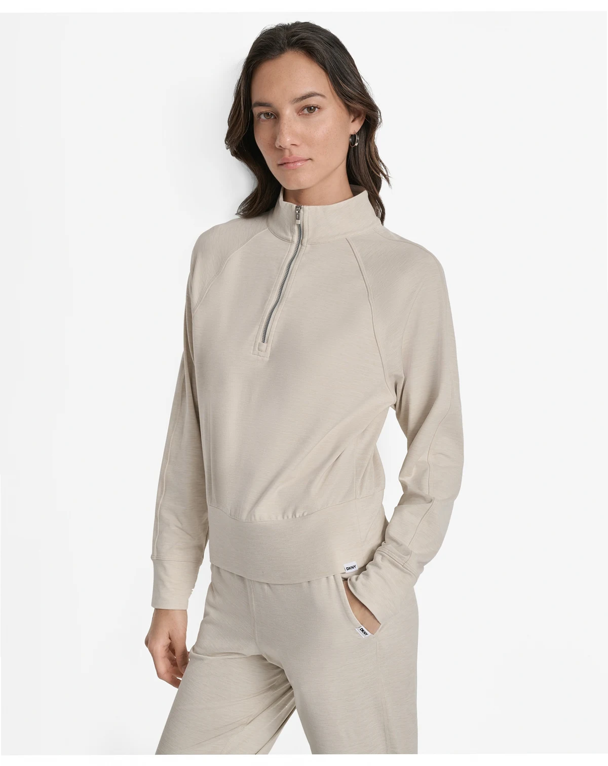 Change up the look in an instant with this DKNY Sport top, a half-zip in space-dyed fabric with tonal topstitching.