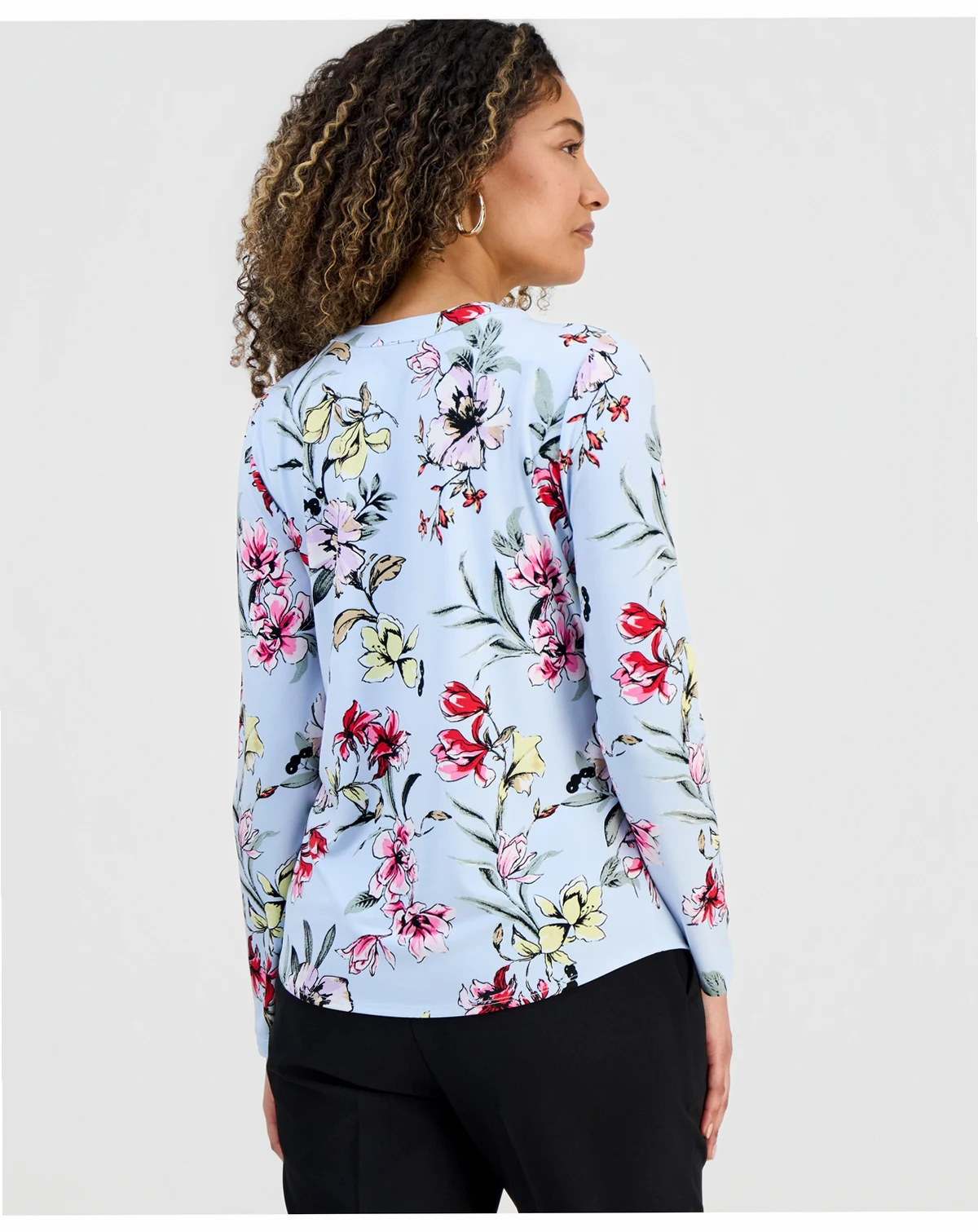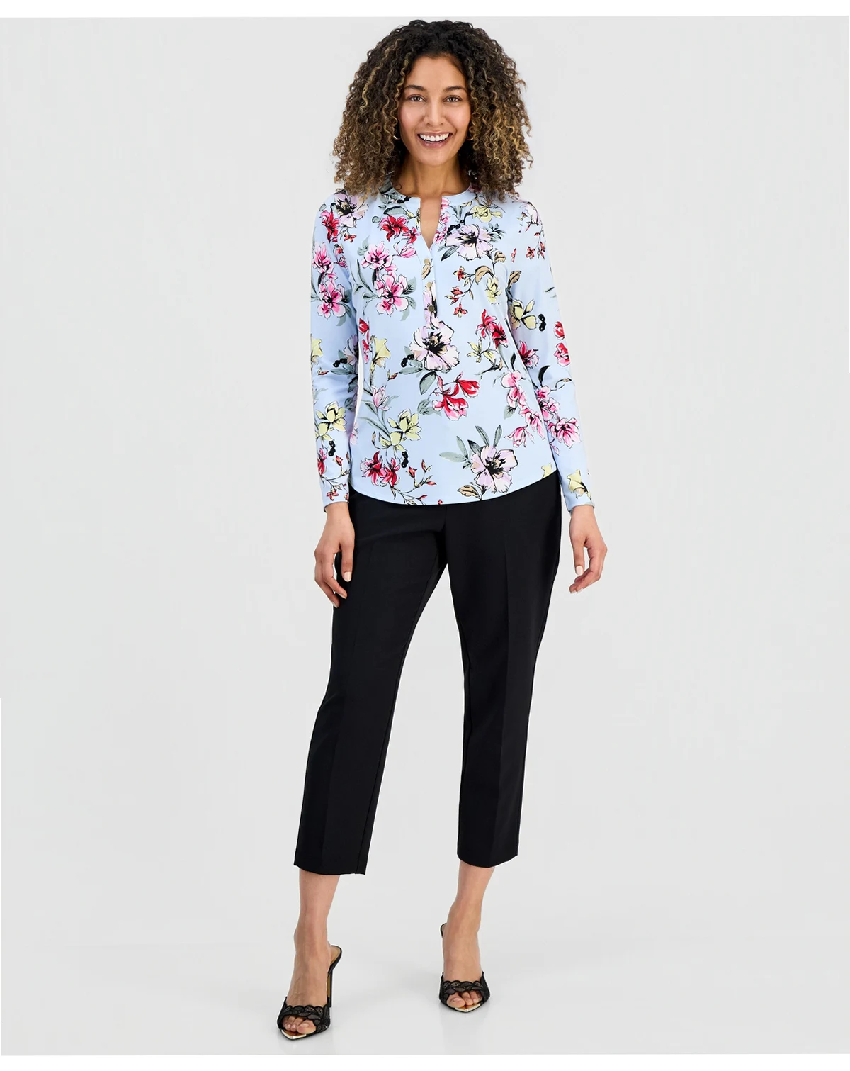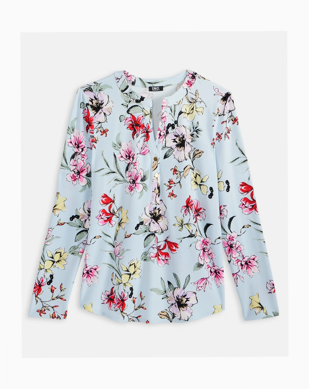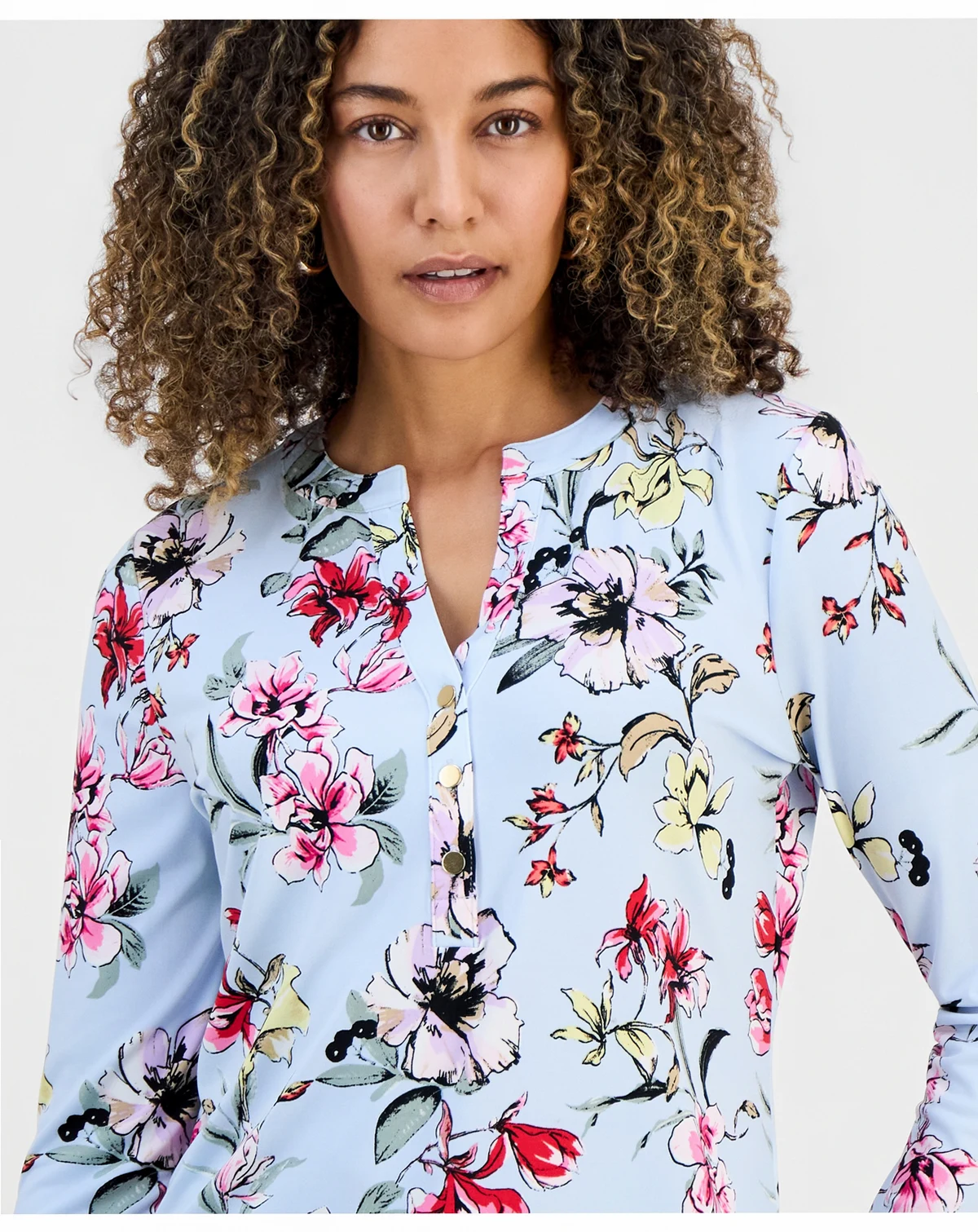 Petite Floral-Print Henley Top, Macy's Exclusive