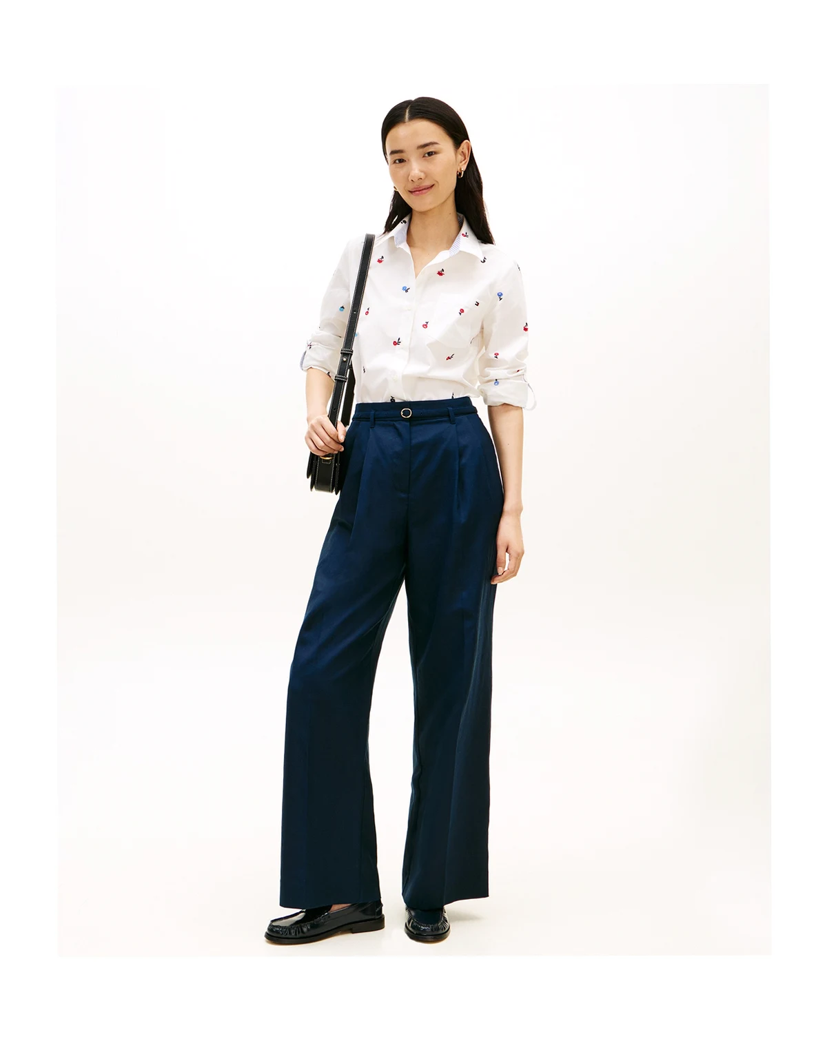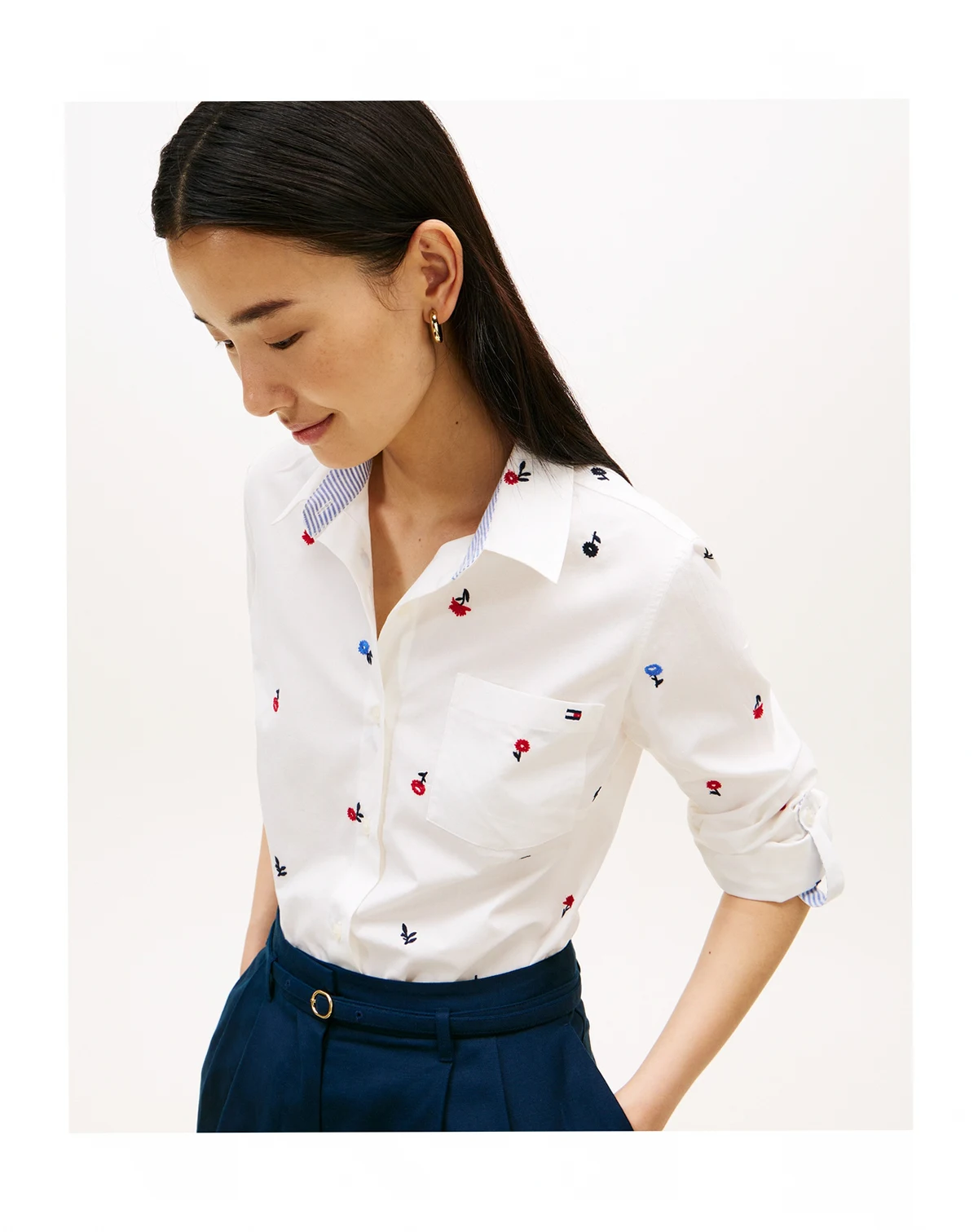 Combine timeless East Coast prep with contemporary style in this poplin printed roll-tab shirt from Tommy Hilfiger, offering lightweight comfort. Roll-tab sleeves provide versatile styling options for casual days or layered weekend looks.