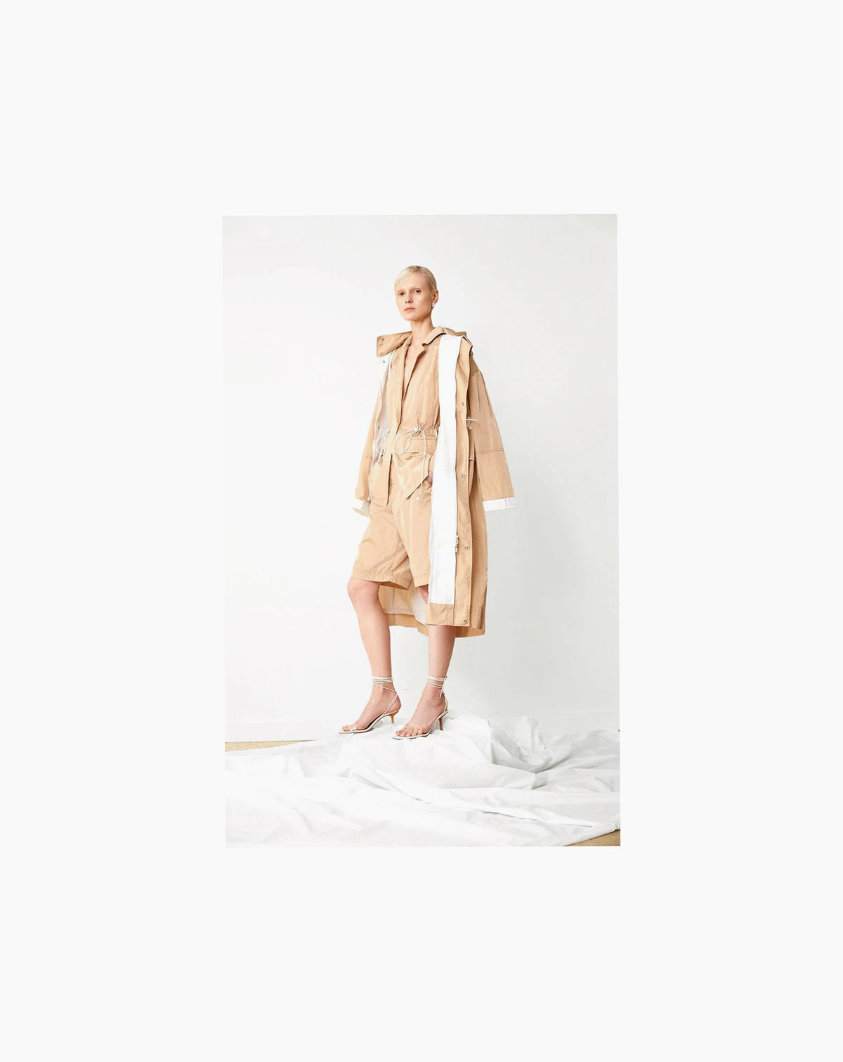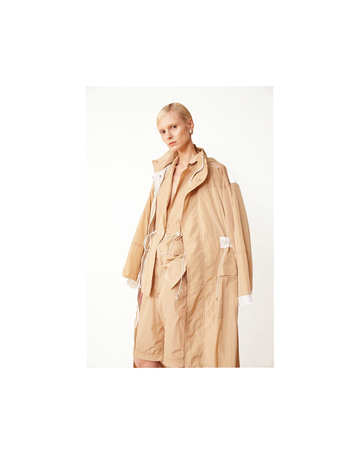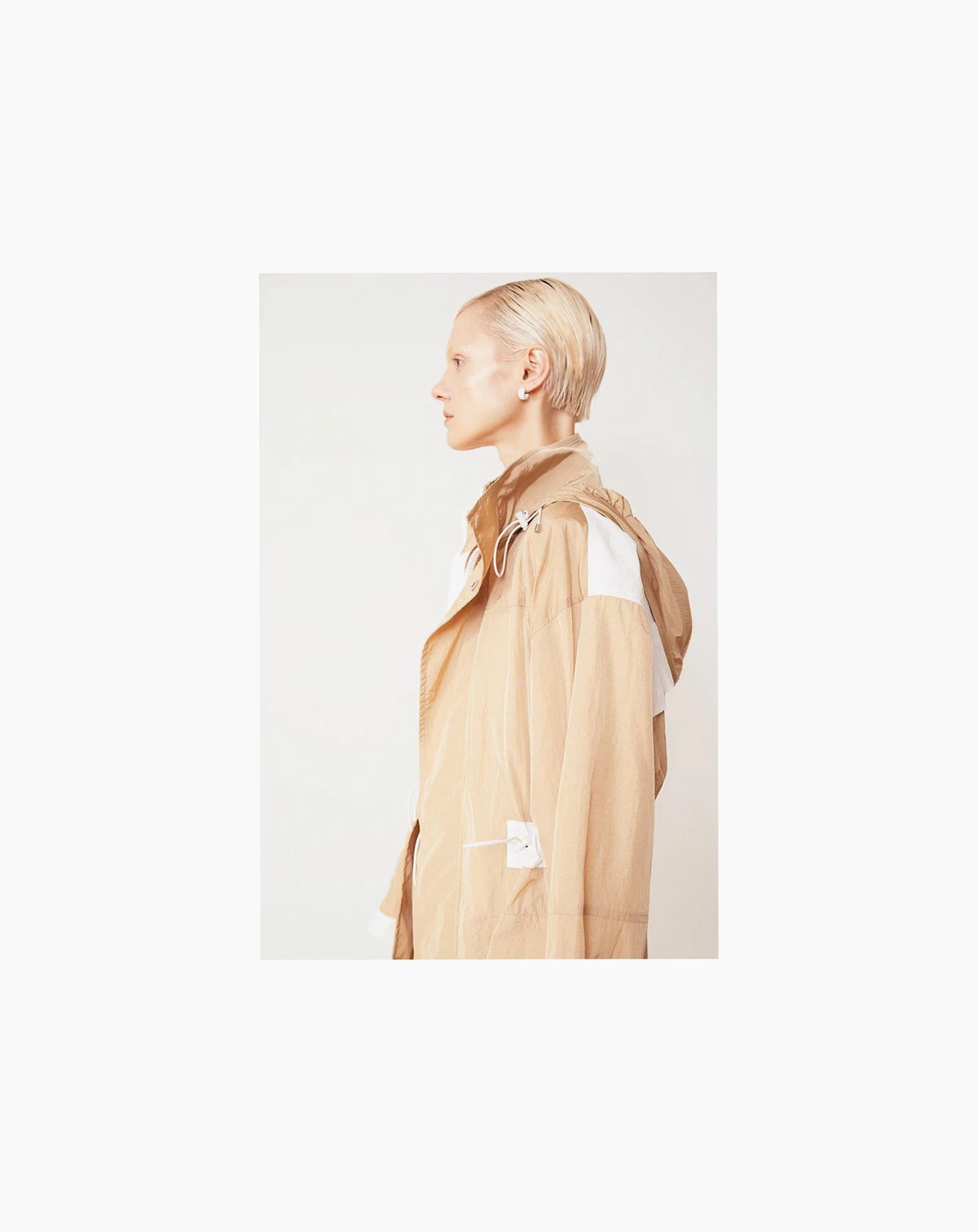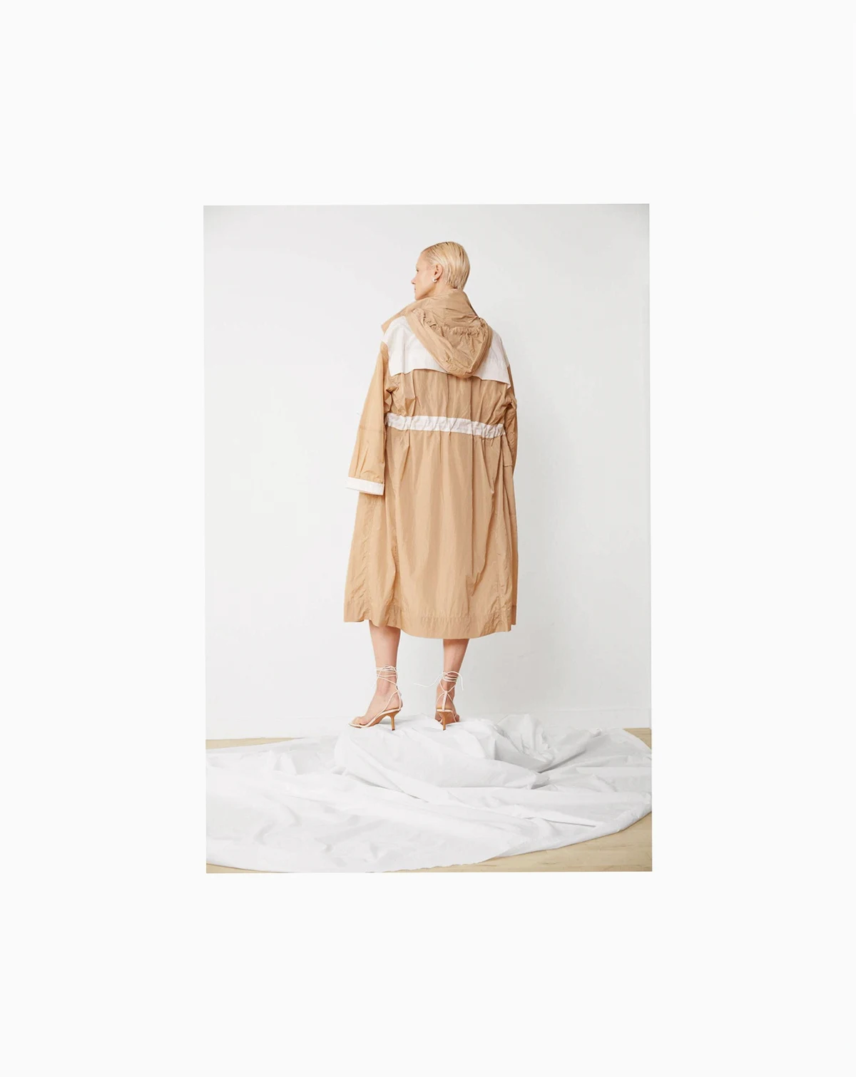 Stay dry in inclement weather with this breathable, water-resistant anorak featuring adjustable sleeve cuffs, zip and snap closure, and a convenient stowaway hood. The ideal travel companion it rolls up without wrinkling and is easily packable. It has a loose, slightly oversized fit and cinch-able waist so you can adjust it to fit you perfectly. Ethically produced in small runs in NYC s Garment District.