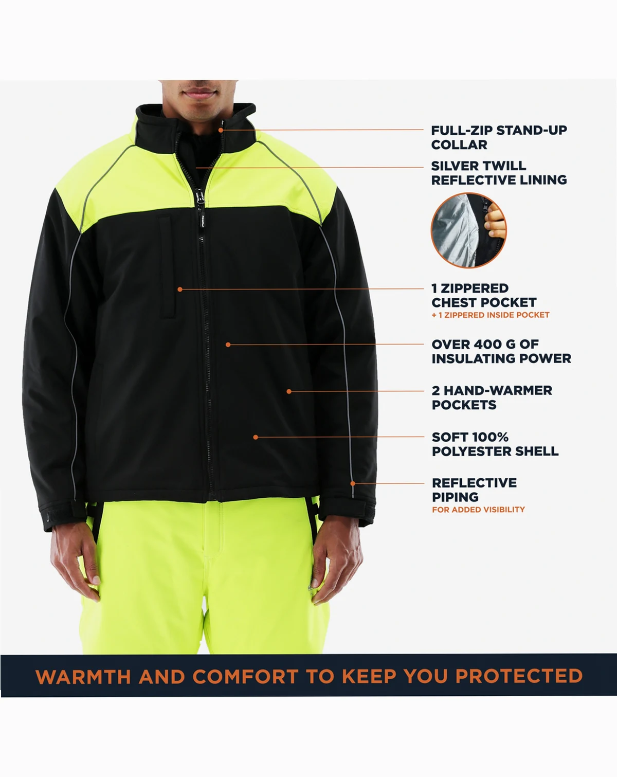 Men's Two-Tone HiVis Insulated Jacket - High-Visibility, Warm, Water-Resistant Work Coat