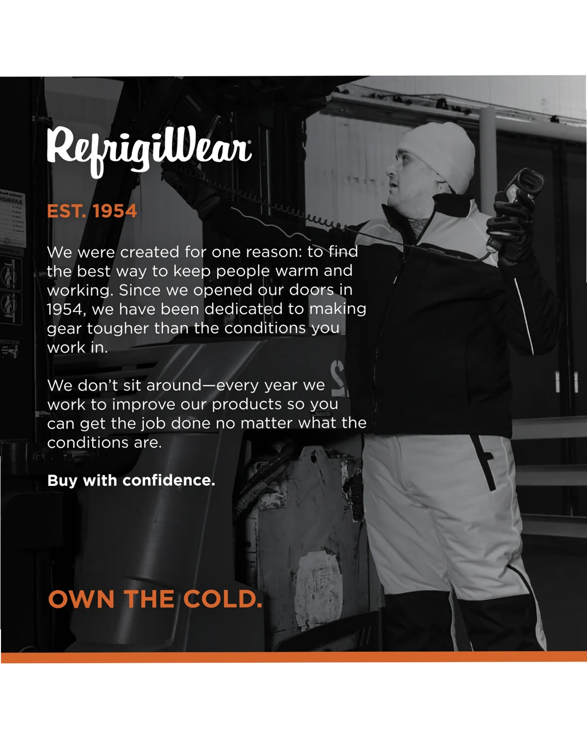 You battle tough jobs, but your gear doesnt have to show it. Fight off dirt and grime after a long day in this two-tone design. Protecting you from the cold in temps down to -20°F, you can get tackle tough and dirty jobs the dirtier, the better. With serious heat-trapping power and HiVis accents to help you stand out, youll get it all done in serious comfort and safety. Sizing Instructions: For the most accurate fit, take your measurements over the base layer of clothing you intend to wear with this RefrigiWear gear (such as thermal underwear, jeans or a sweatshirt) and refer to the size chart for this product.