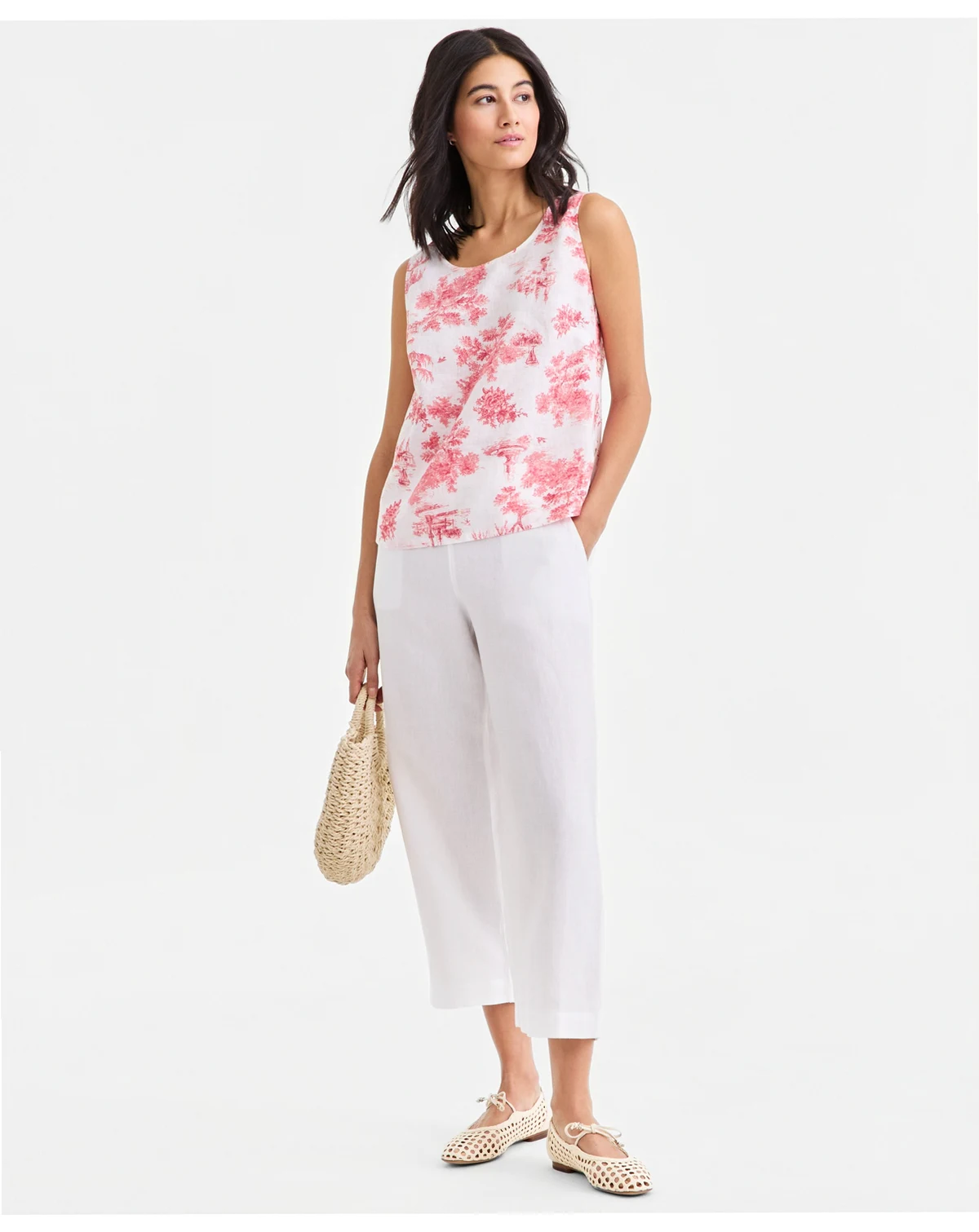 Women's 100% Linen Pleated-Back Sleeveless Top, Macy's Exclusive