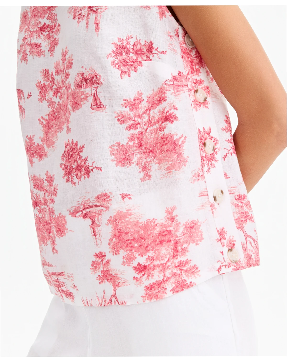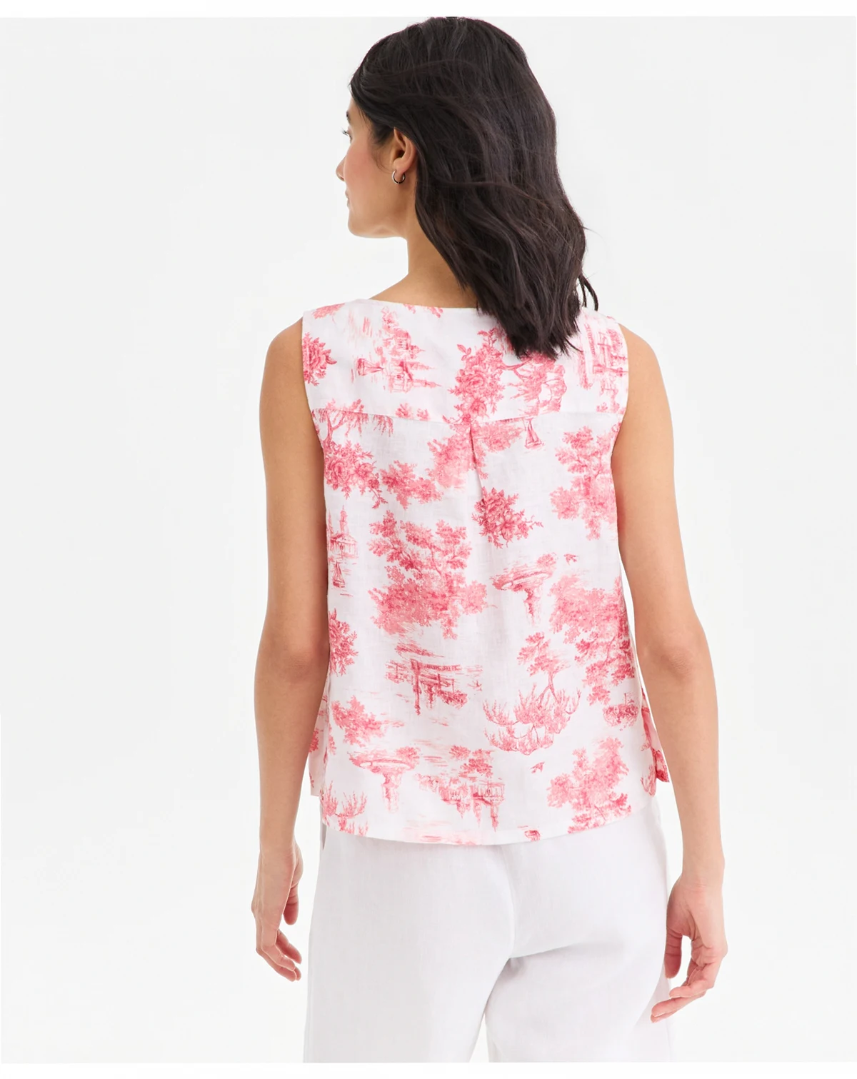 Charter Club brings vintage appeal into your rotation with a Toile de Joy print on this sleeveless linen top.