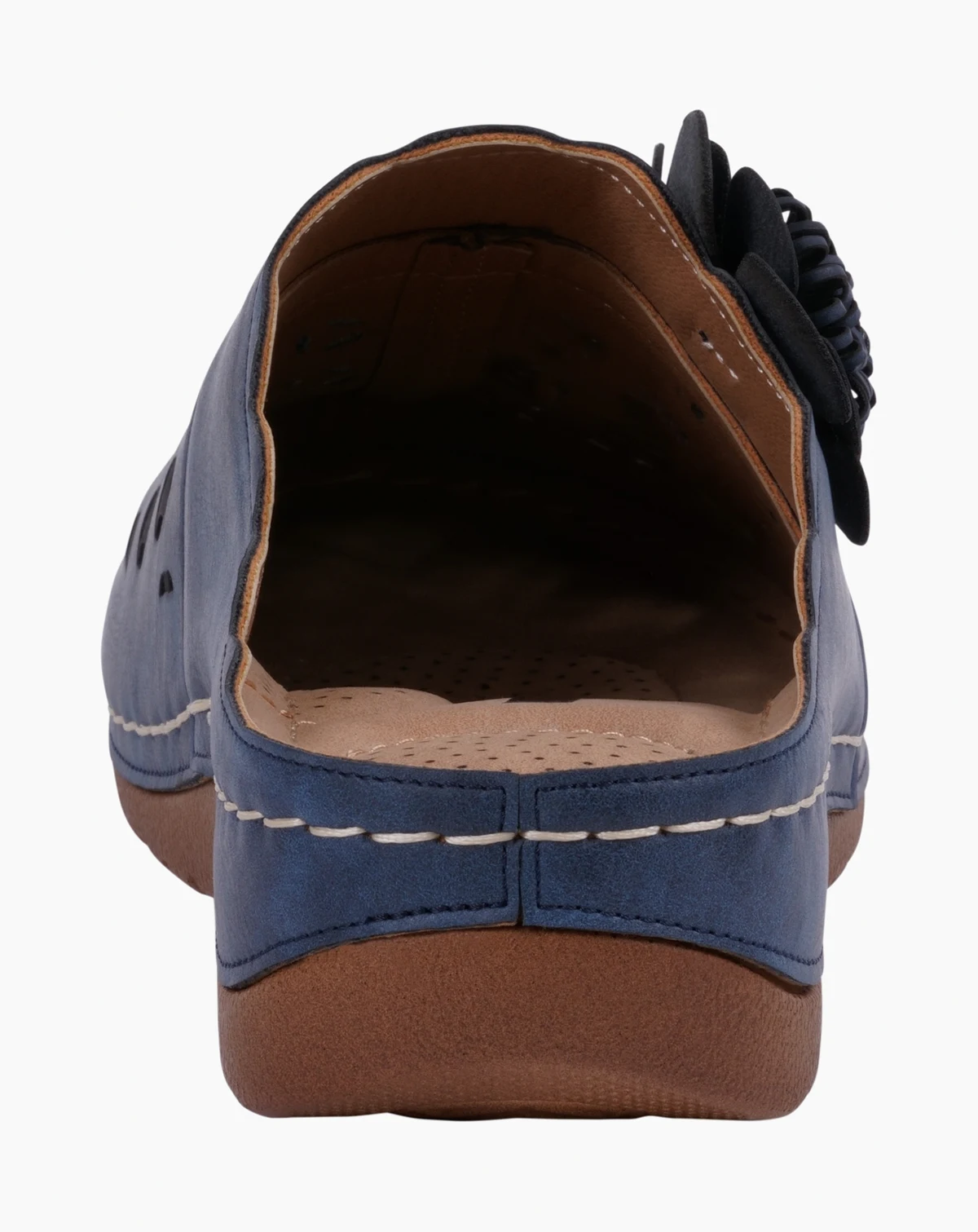 Meet Marisol, the charming mule that combines artisan detail with everyday comfort. Delicate cutouts and a statement floral applique add feminine flair, while the cushioned insole and low-profile wedge ensure support with every step. Whether you're at home or on the go, Marisol delivers effortless style and cozy wearability.