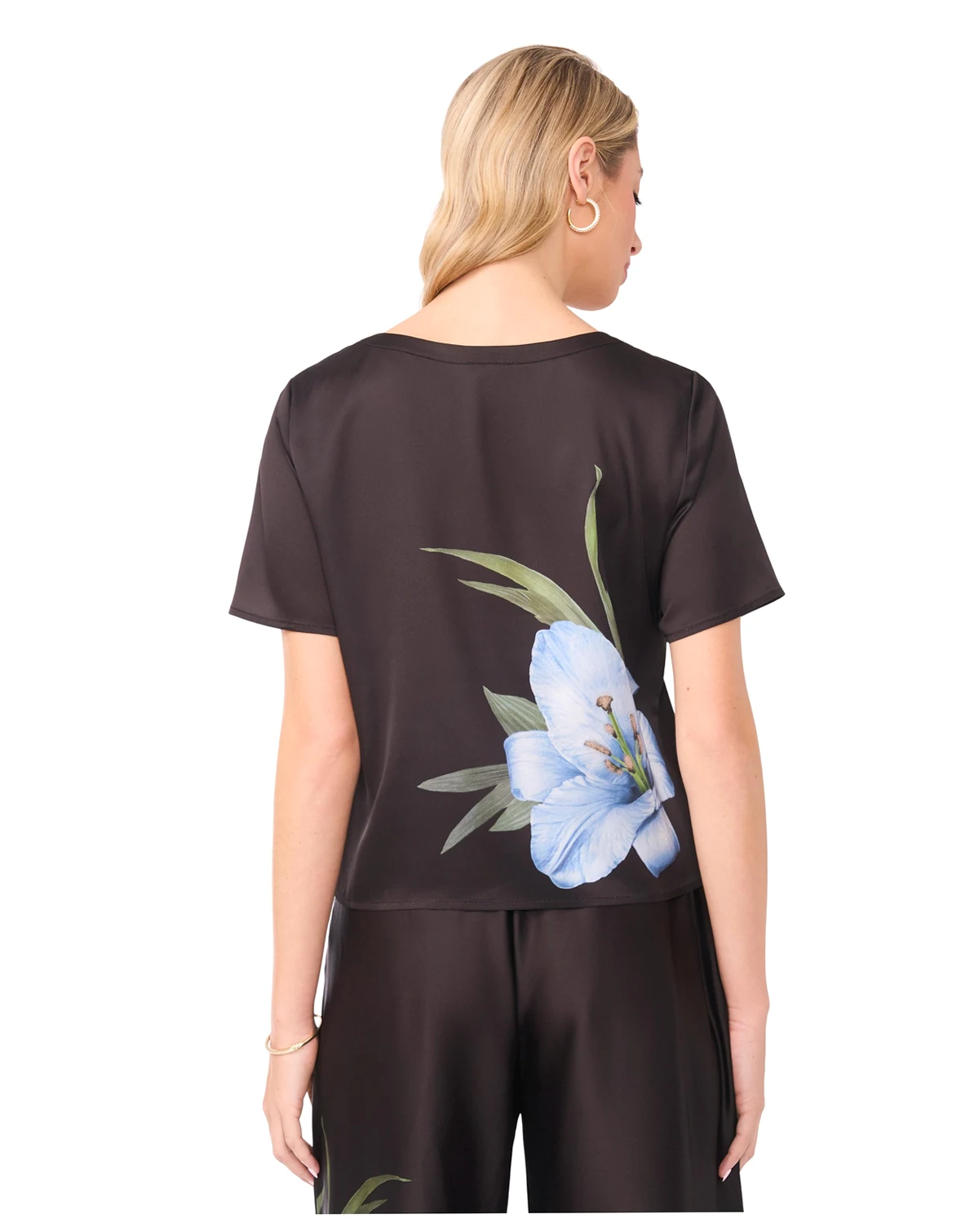 Bring effortless charm to your wardrobe with this Vince Camuto blouse, featuring a vibrant floral graphic print that adds a touch of playful elegance. Short sleeves and a classic crewneck provide comfortable, easy wear, while the pull-on style ensures a relaxed fit. ABOUT THE BRAND: Vince Camuto is a globally renowned brand that embodies European styling. Detailed craftsmanship across the line embraces current trends while maintaining a classic aesthetic.