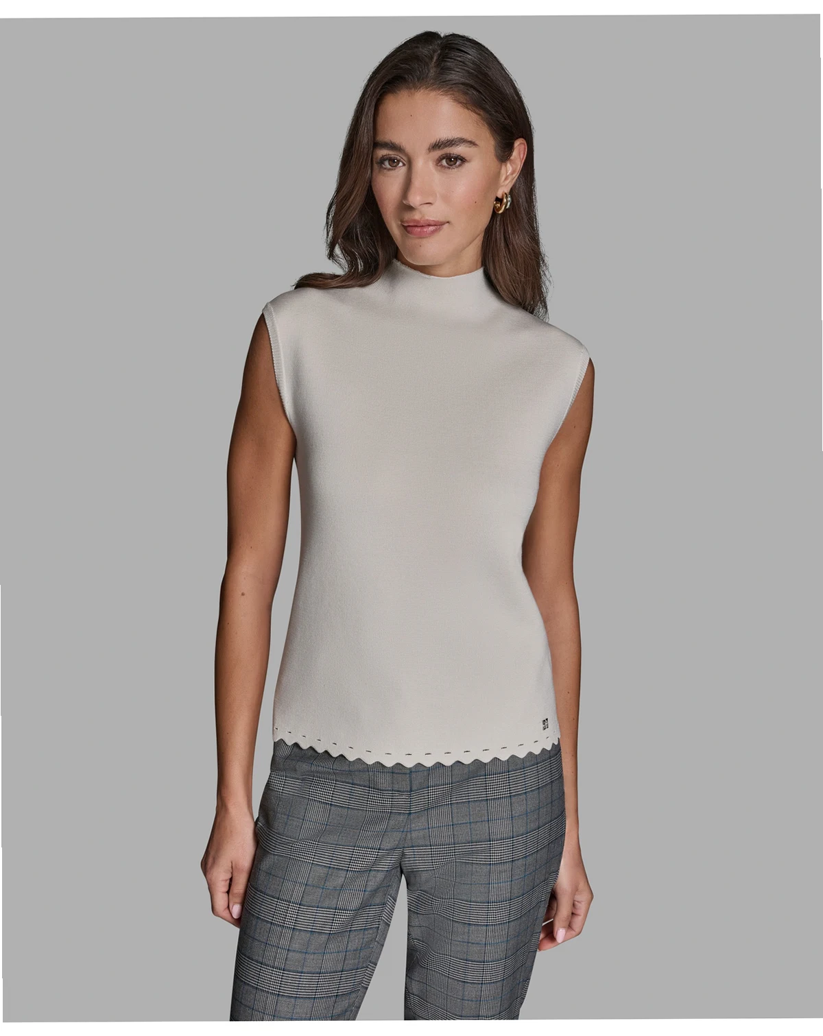 Providing a sleek and modern foundation, this BCBG top features a mock neck and a sleeveless silhouette in a soft knit construction. The pull-on design offers effortless style and a comfortable fit that hits at the hips.