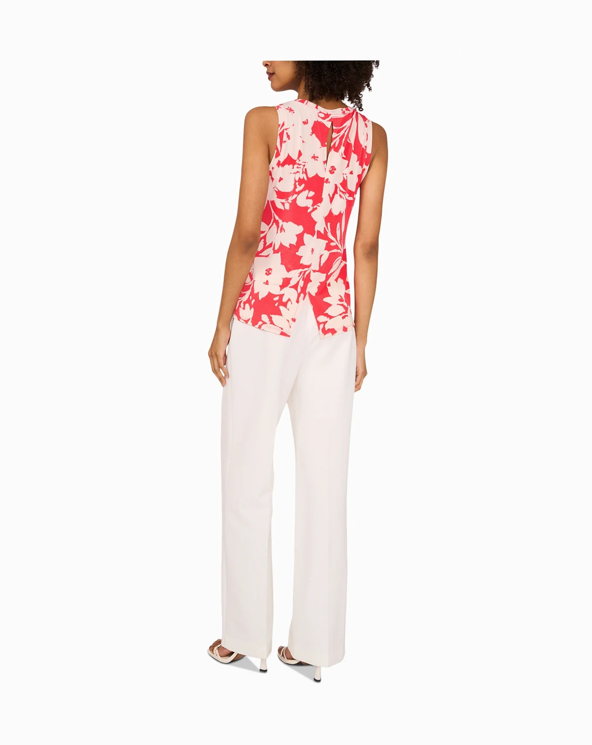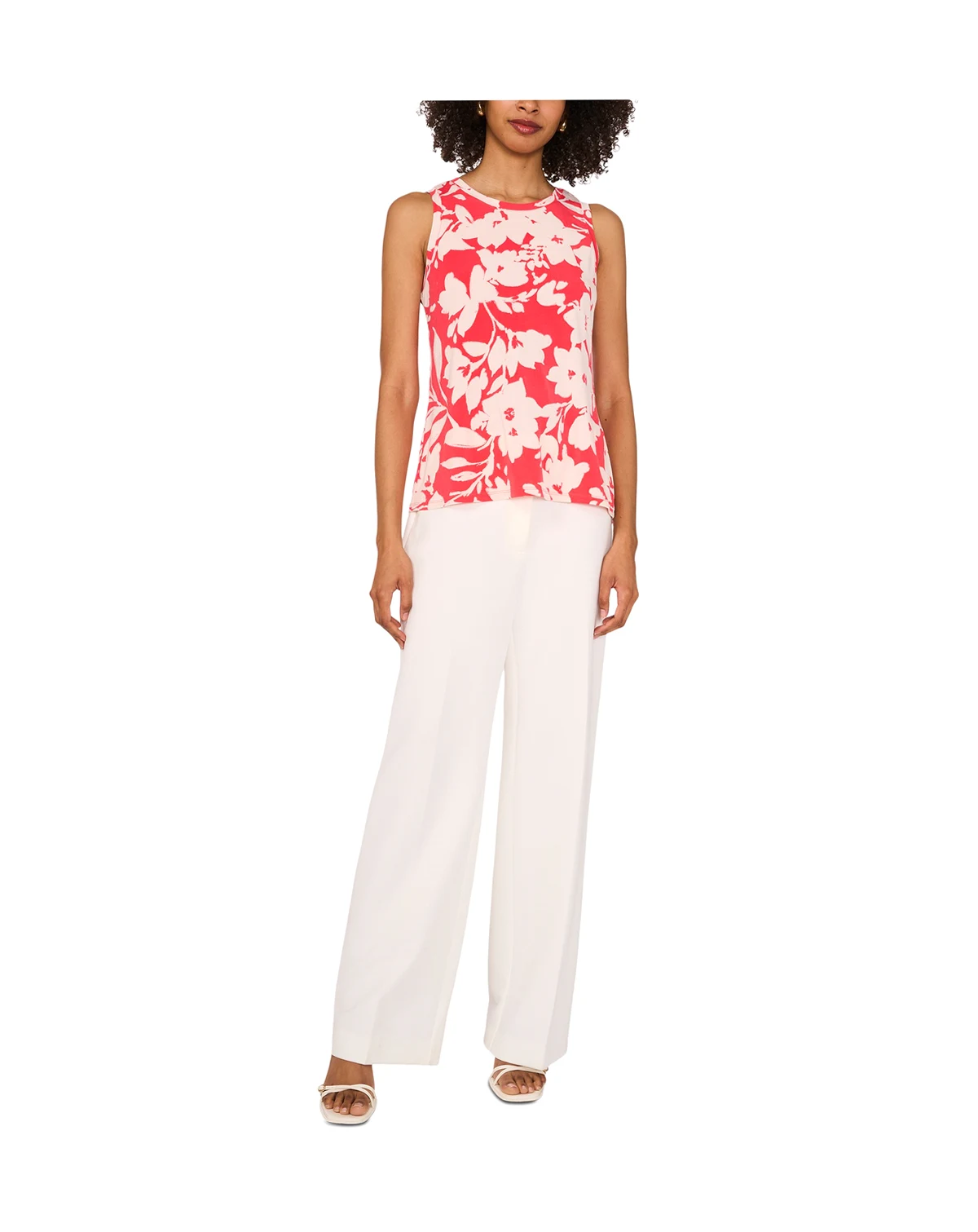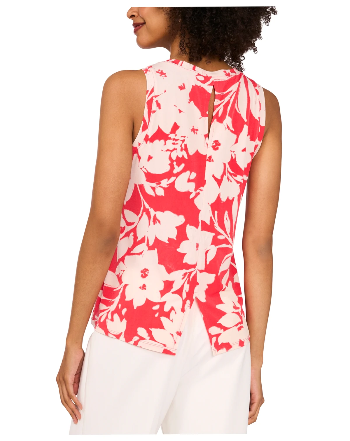 Freshen your look in this pretty floral-print sleeveless top from Vince Camuto.