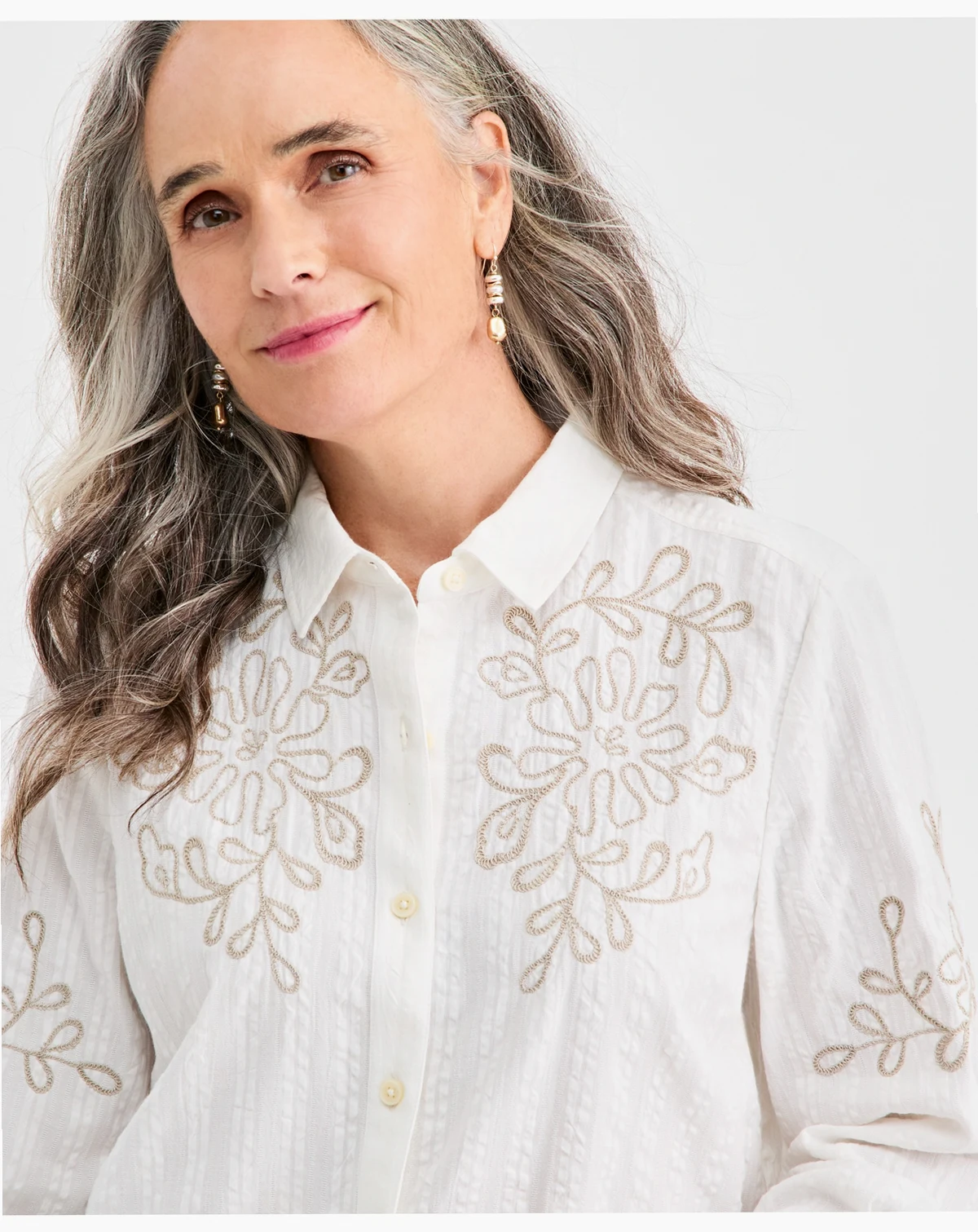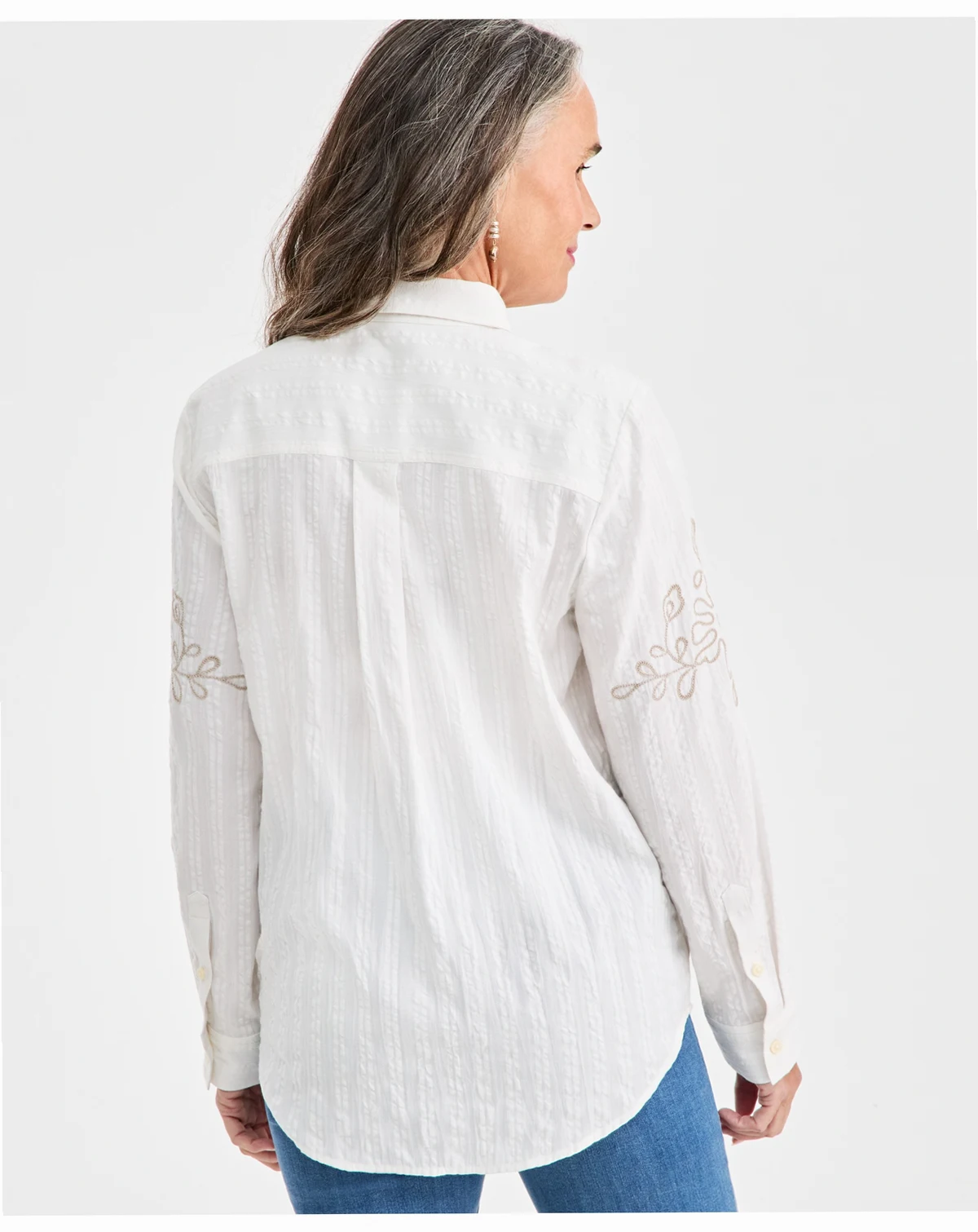 Embroidered with delicate details, this perfect shirt from Style & Co offers a tailored and polished look. A regular shirt collar and long sleeves create a classic, versatile silhouette.