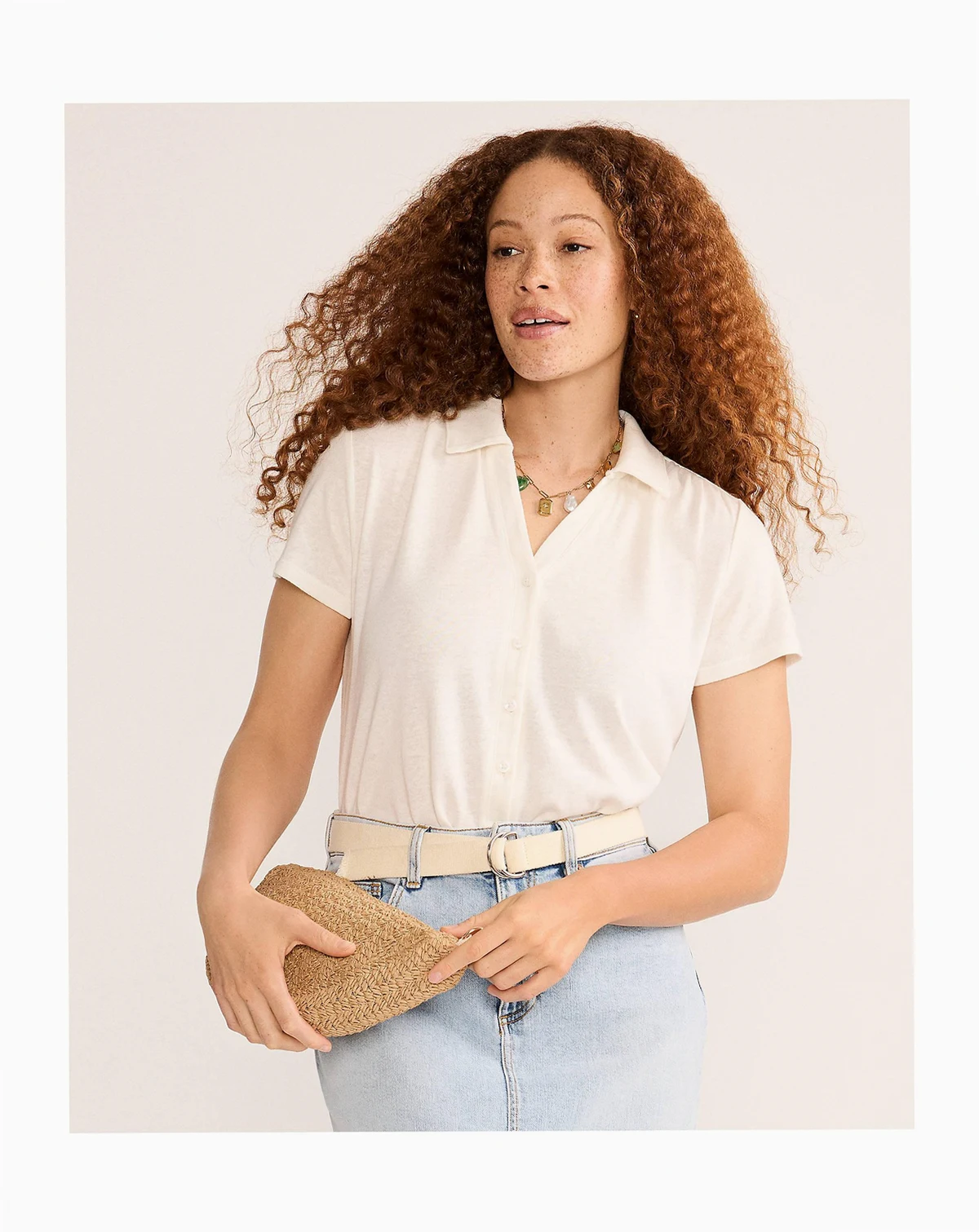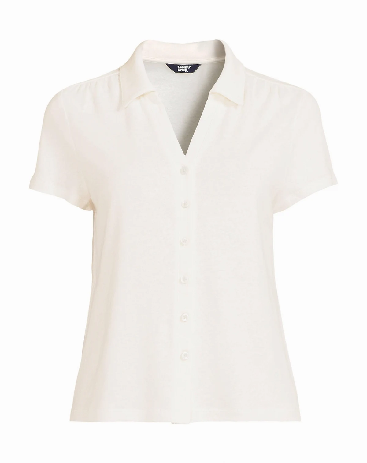 Women's Linen Blend Short Sleeve Button Front Polo Top