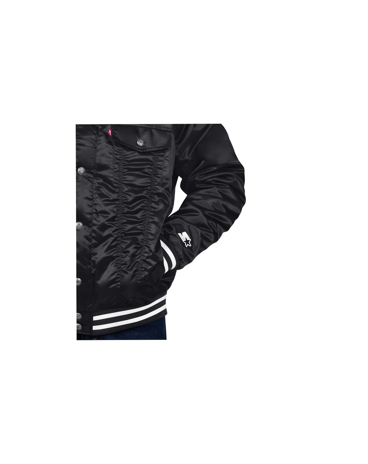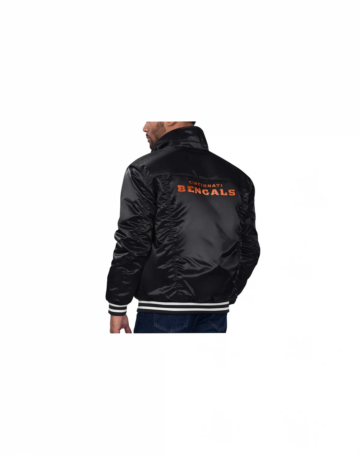 Show off your devotion to the Cincinnati Bengals by sporting this Silver Tab Trucker Full-Snap Jacket. Its collaborative design from Levi's and Starter features lustrous satin fabric, plush quilted lining and traditional striped trim. Multiple pockets keep personal items close at hand in this exclusive Cincinnati Bengals jacket.