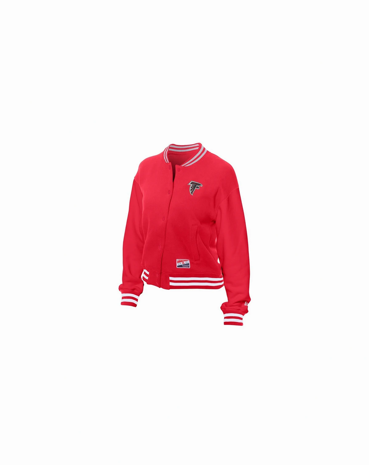 Show your timeless team pride in this Atlanta Falcons Throwback Fleece Full-Snap Jacket from New Era. This midweight jacket is suitable for moderate temperatures, perfect for layering up on game day. The embroidered chenille applique team logo on the left chest showcases your Atlanta Falcons pride in style.