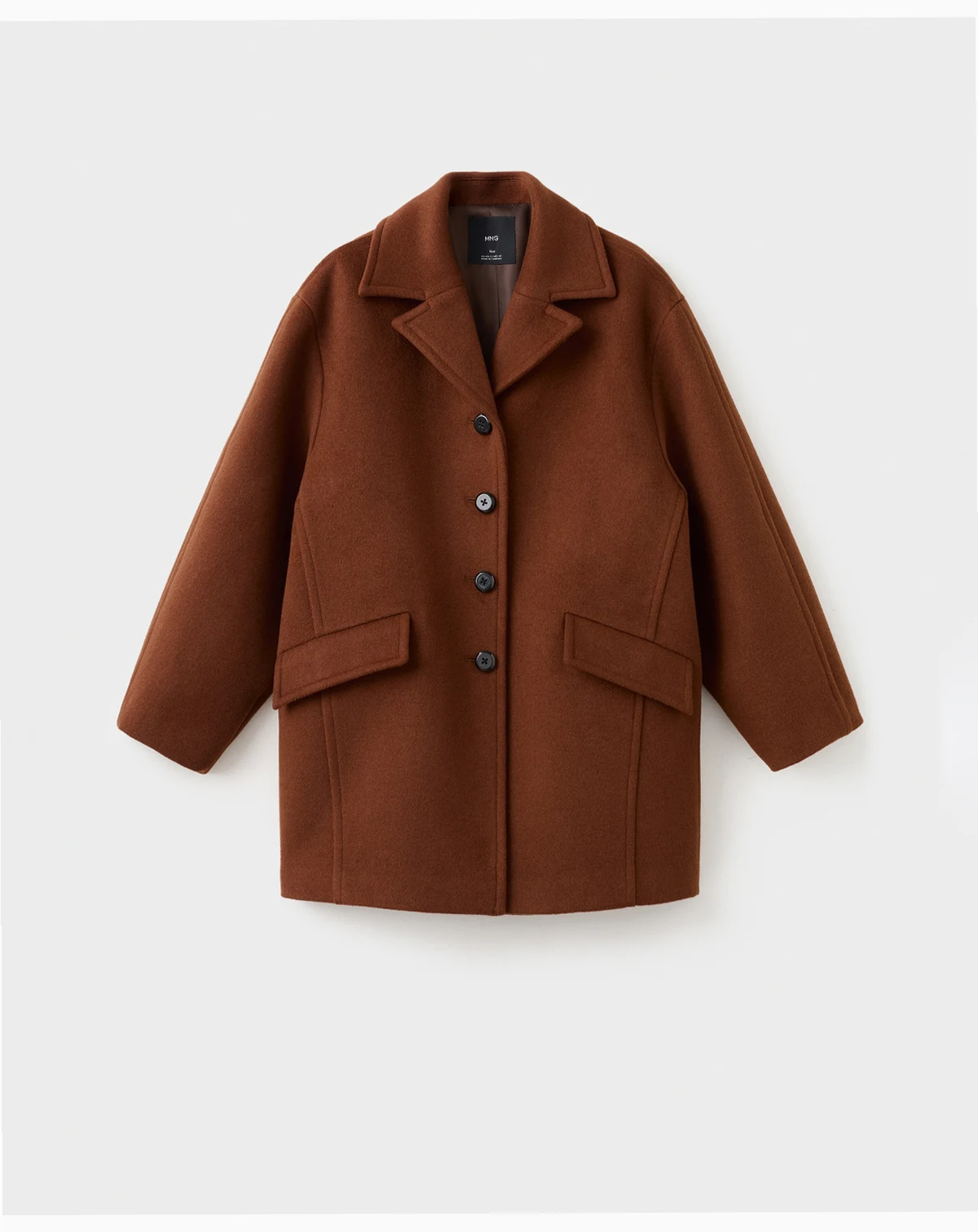 Embrace polished warmth in the Wool-Blend Coat with Button Fastening from Mango. Crafted from wool mix fabric, the midi length coat features straight cut, notched lapel collar, long sleeves and flap pockets.