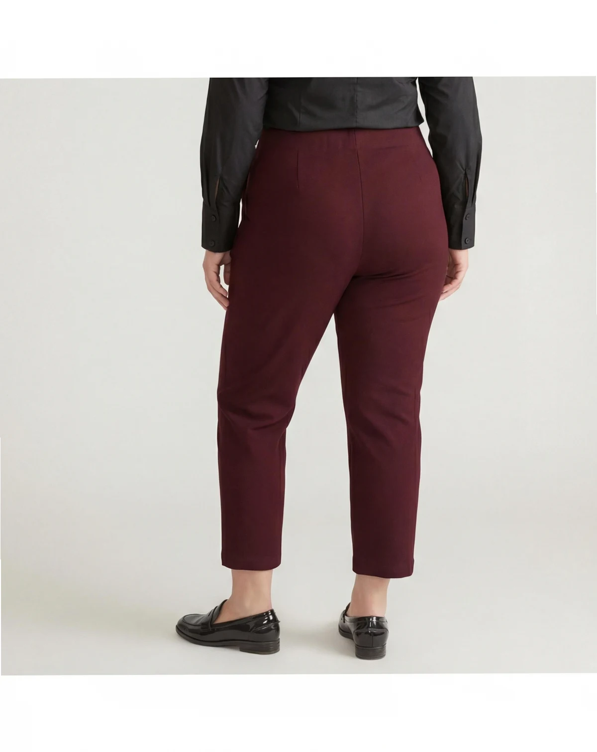 Women s high-rise pull-on ponte pants design.; Straight-leg fit is tailored at waist and hip.