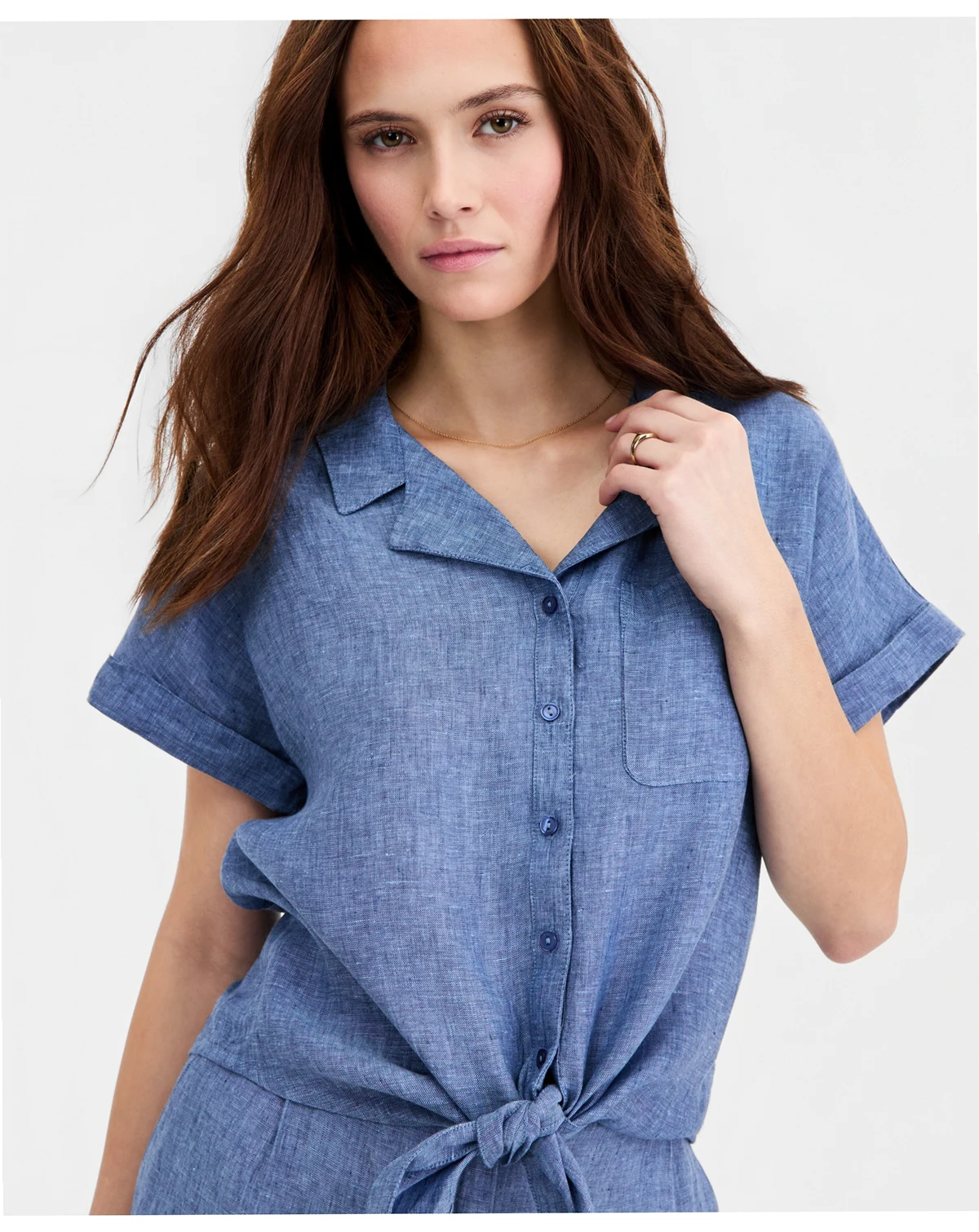 Women's 100% Linen Tie-Front Shirt, Created for Macy's
