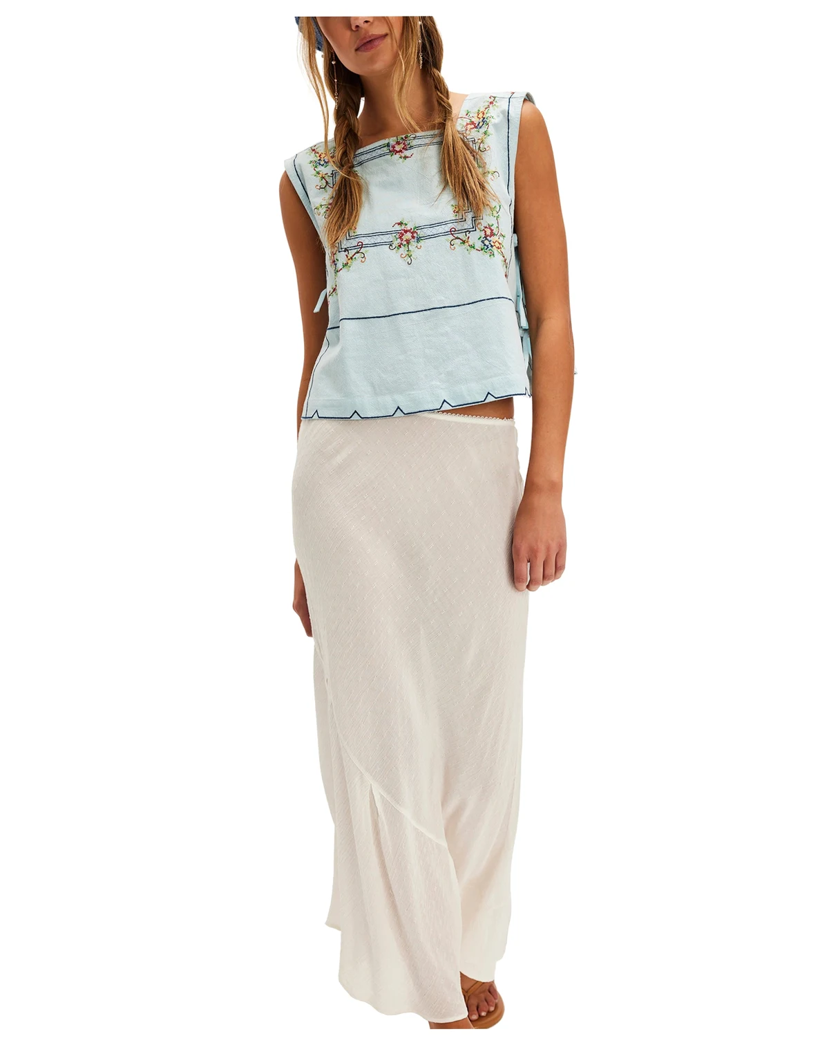 Meet us in the secret garden with this top by Free People, showcasing charming cross-stitch embroidery and open tie-sides. A high square neckline and boxy, cropped fit create a dainty, stunning look. ABOUT THE BRAND: If you love the laid-back charm of boho-chic apparel, you'll find a beautiful selection from Free People at Macy's that suits your style. From ultra-feminine dresses to cute tops, browse the collection of casual, hip designs.