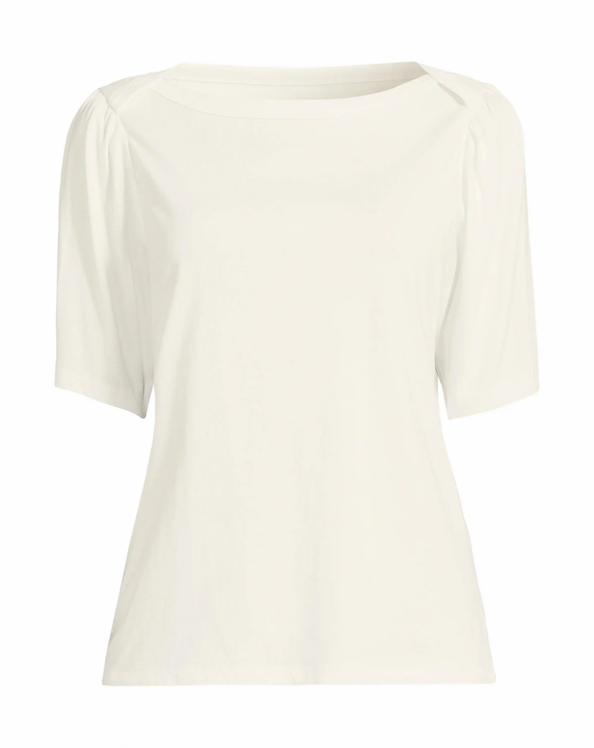What is Supima? Only the best cotton grown in America! With extra long fibers that feel smoother, take dye better and last longer than lesser cottons. It s rare, too — less than 3% of American cotton is fine enough to wear the Supima name. So you know it makes an exceptional tee.With a flattering boat neck and elbow sleeves, think of this tee as your new go-to.Supima is conscientiously sourced, American-grown cotton that s farmed to minimize environmental impact.
