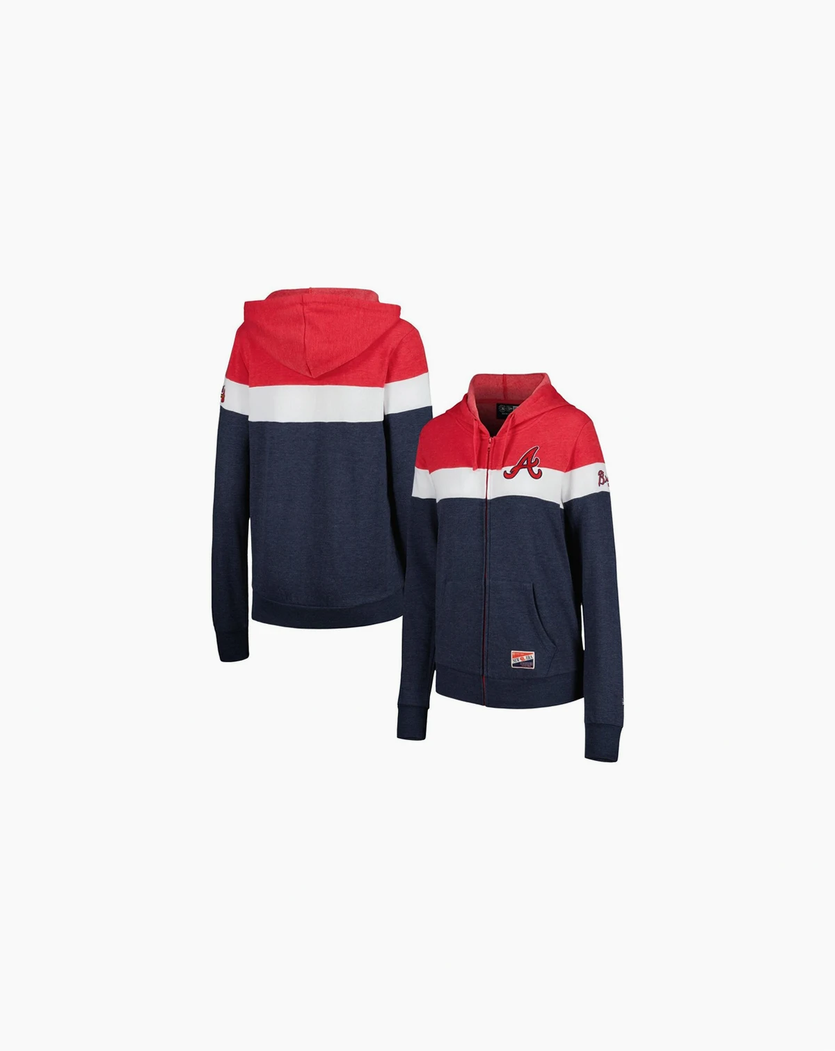 This New Era Colorblock full-zip jacket is the perfect layering piece to show off your unwavering Atlanta Braves pride while keeping warm. It offers a toasty fleece lining and midweight construction for optimal comfort and coziness. On top of that, this hoodie features striking Atlanta Braves embroidery and graphics to let everyone know your fandom is unmatched.