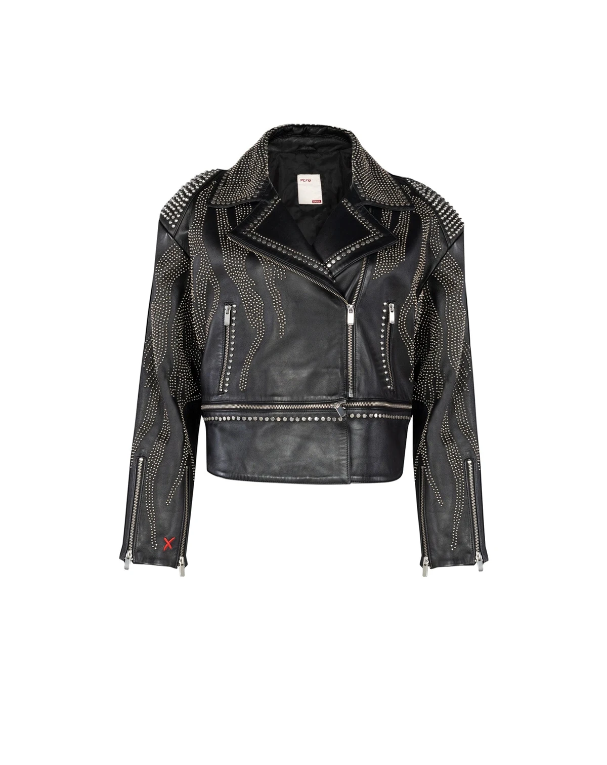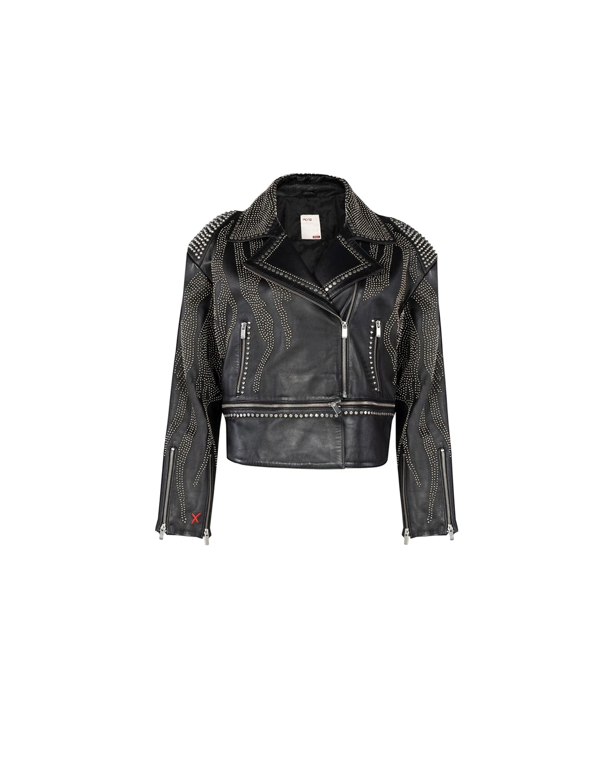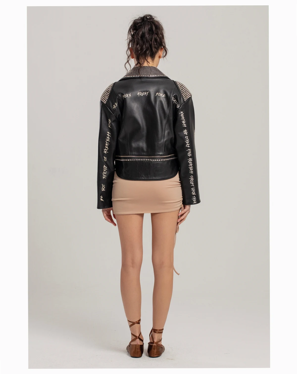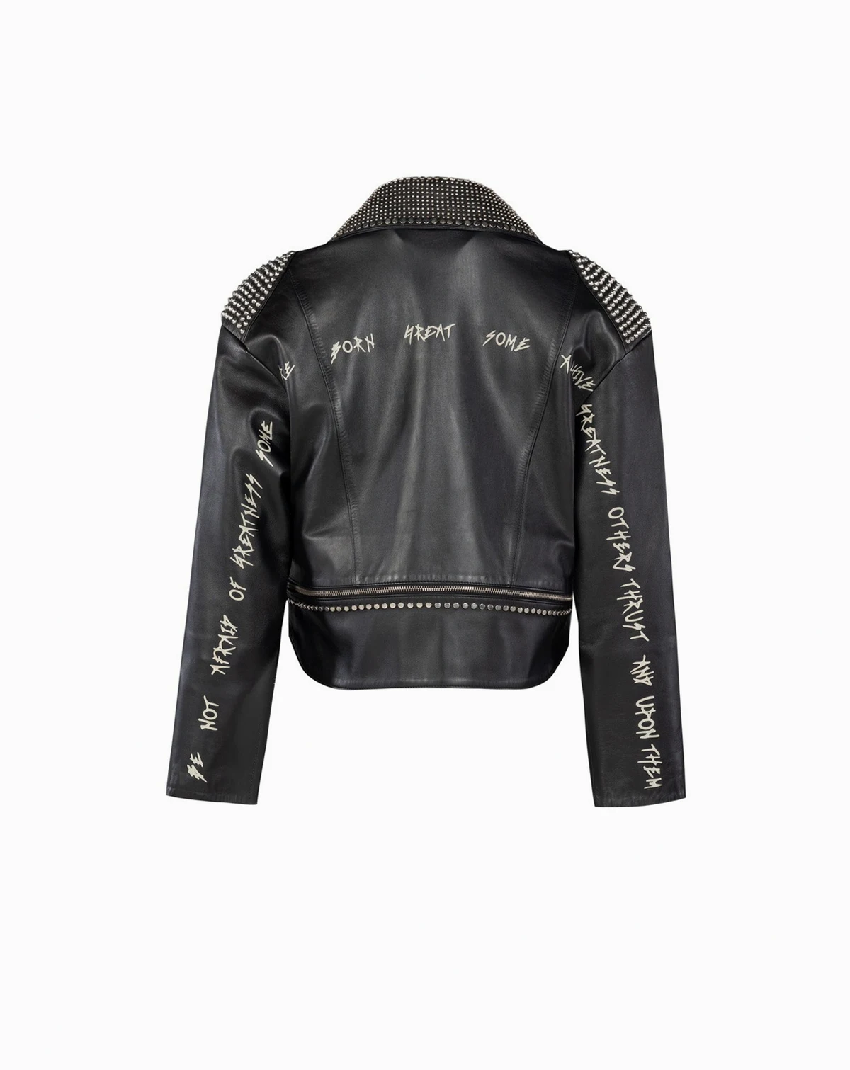 The Metal Rivet Detailed Zippered Printed Leather Jacket is a bold statement piece that exudes edgy sophistication. Crafted from premium leather, this jacket features striking metal rivet details and a unique printed design, making it a standout addition to any wardrobe. The zippered front ensures a secure fit, while the high-quality construction guarantees both style and durability for years to come.