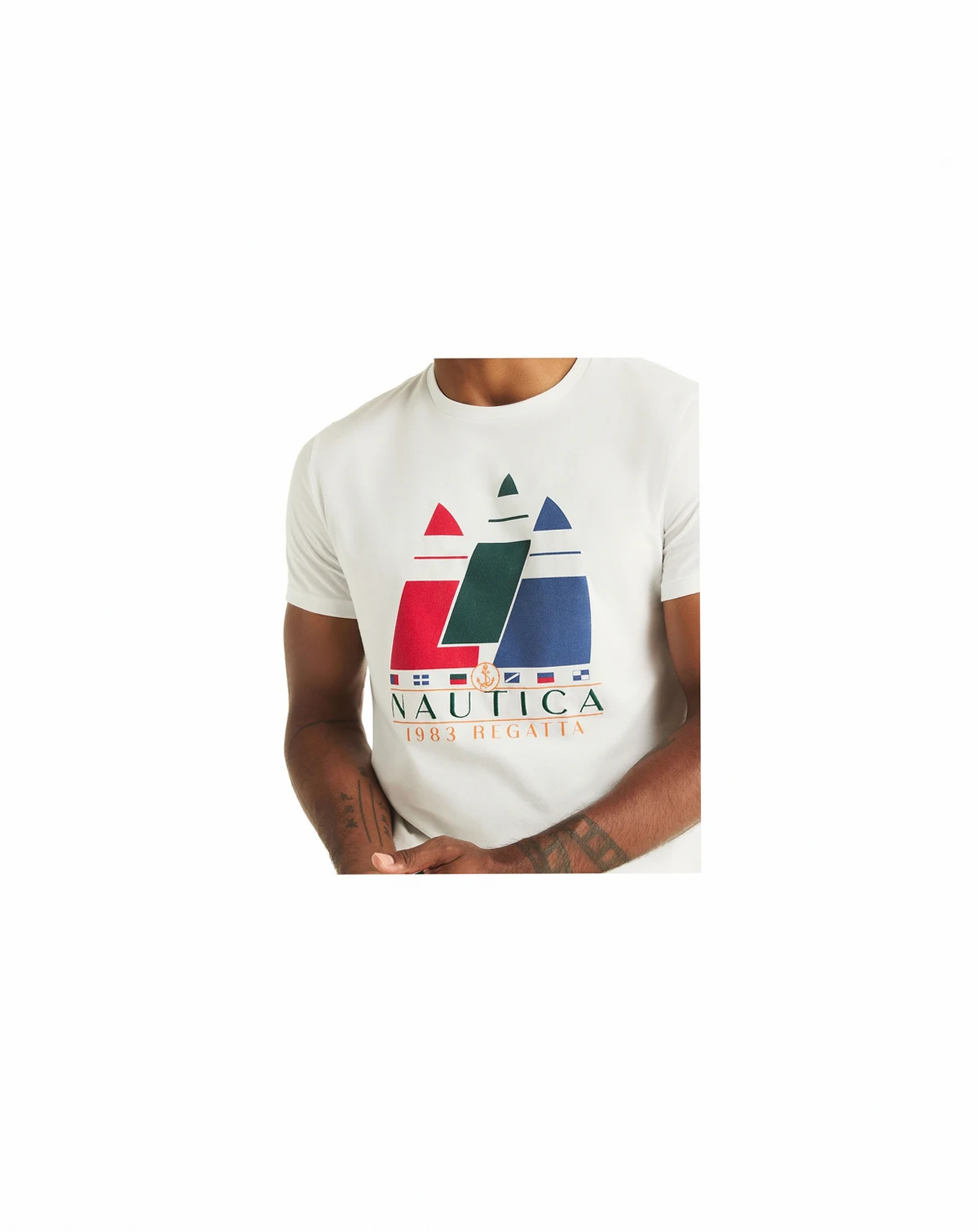 Infuse your wardrobe with a maritime-inspired statement using this sail graphic T-shirt by Nautica. Its short sleeves ensure comfortable wear in warmer weather, and the crewneck creates a classic silhouette that pairs effortlessly with all types of bottoms.