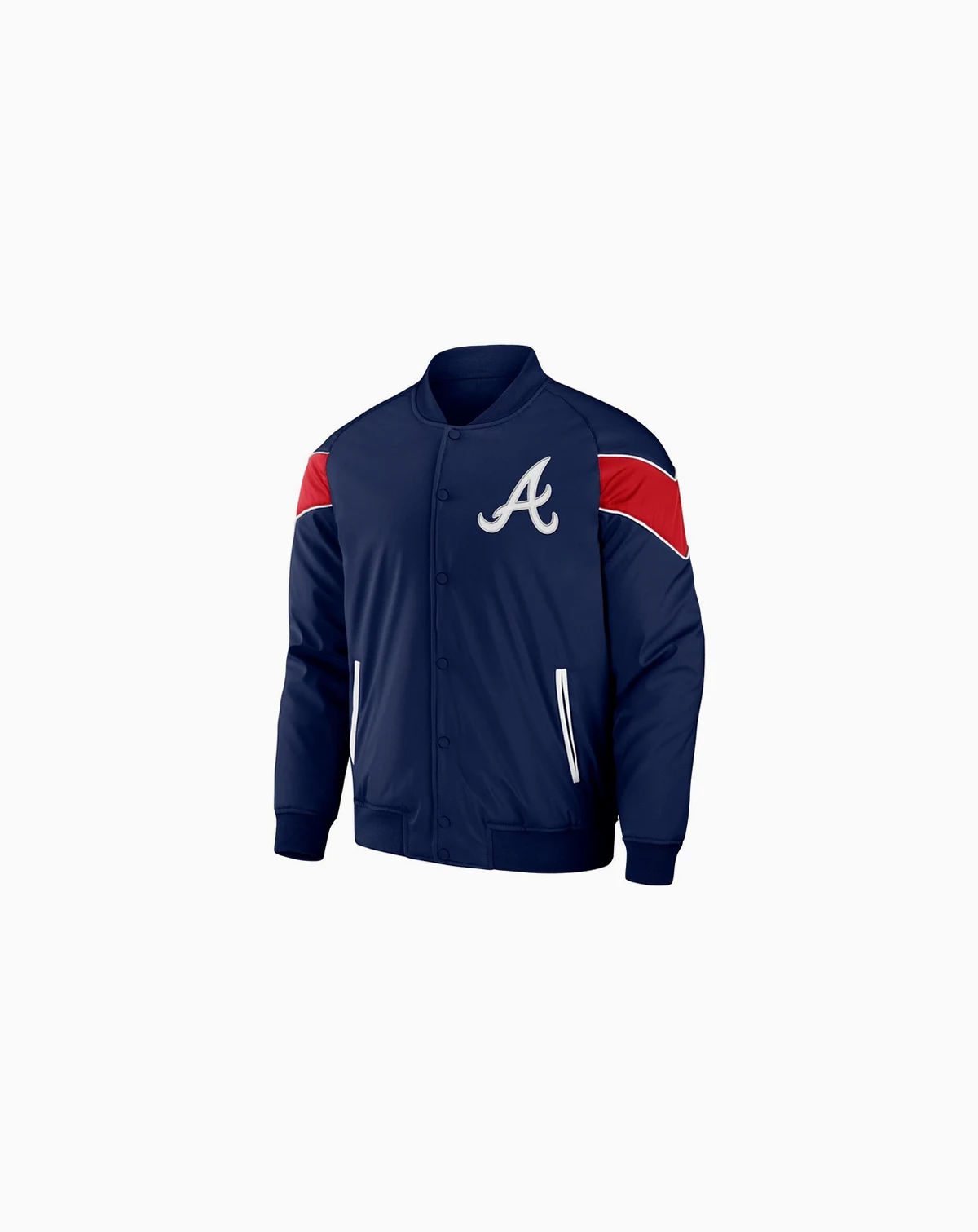 Draw attention on game day by sporting this full-snap Baseball jacket from the Darius Rucker Collection by Fanatics. It features an impressive Atlanta Braves design with bold team embroidery and accents for a standout look. Raglan sleeves offer a roomier fit for a natural range of arm motion, ensuring you can cheer the Atlanta Braves on to victory unimpeded.