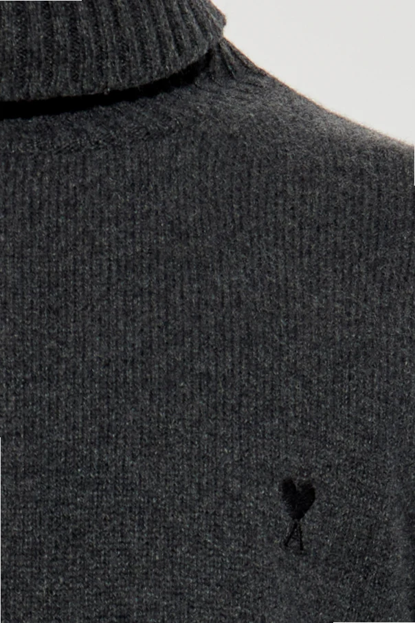 Experience the understated sophistication of the dark graphite cashmere turtleneck sweater by AMI Alexandre Mattiussi . Impeccably crafted from an exceptionally soft, refined cashmere blend, its delicate knit and smooth texture epitomize the art of Parisian tailoring. The classic, straight silhouette, accentuated by long sleeves and a high, fold-over ribbed collar, is elegantly minimalist—free from unnecessary embellishments, patterns, or pockets.