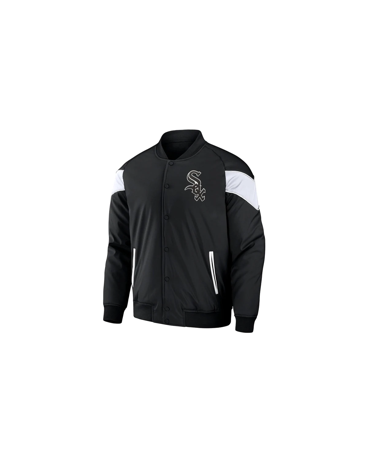 Draw attention on game day by sporting this full-snap Baseball jacket from the Darius Rucker Collection by Fanatics. It features an impressive Chicago White Sox design with bold team embroidery and accents for a standout look. Raglan sleeves offer a roomier fit for a natural range of arm motion, ensuring you can cheer the Chicago White Sox on to victory unimpeded.