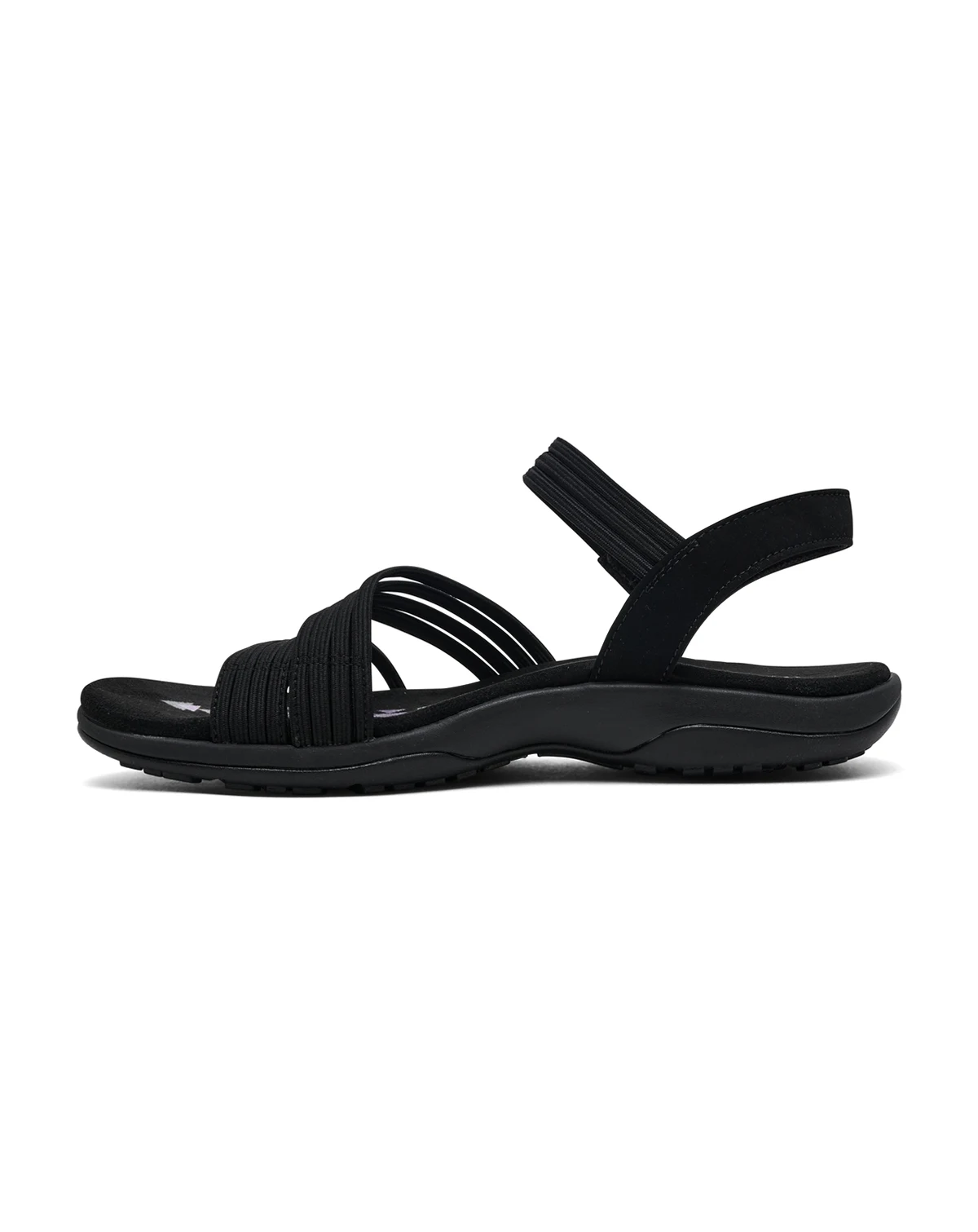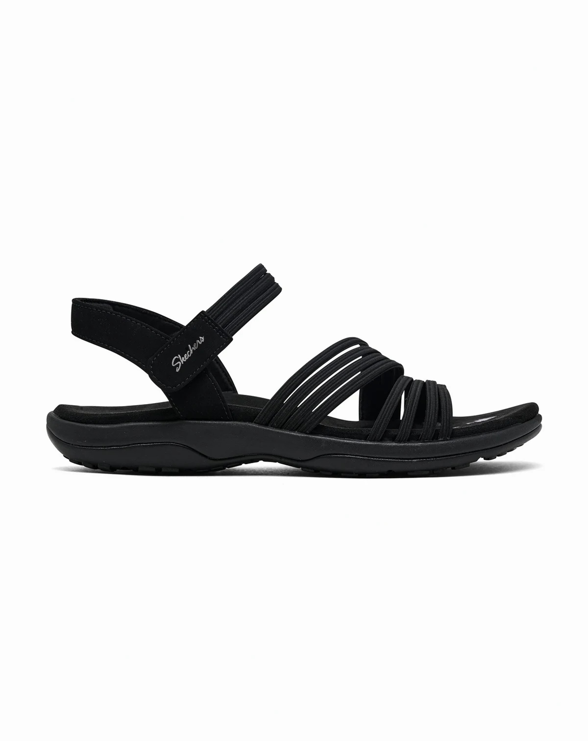 Morning trots to the coffee shop are a breeze wearing these Skechers Women's Reggae Slim - Coffee Run Slingback Sandals. Crafted with a flexible gore strap upper, this Stretch Fit sandal features a soothing Skechers Memory Foam footbed, an ultralight, impact-absorbing Reggae midsole, and an adjustable instep closure.