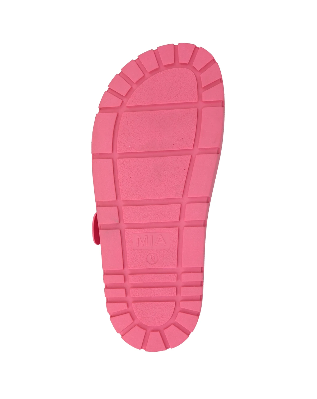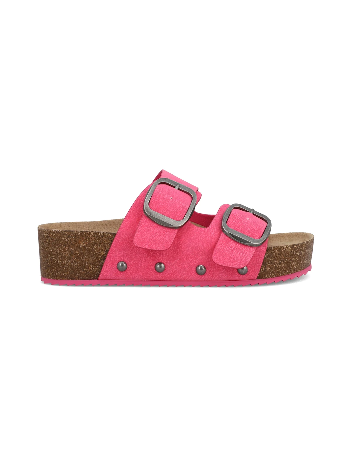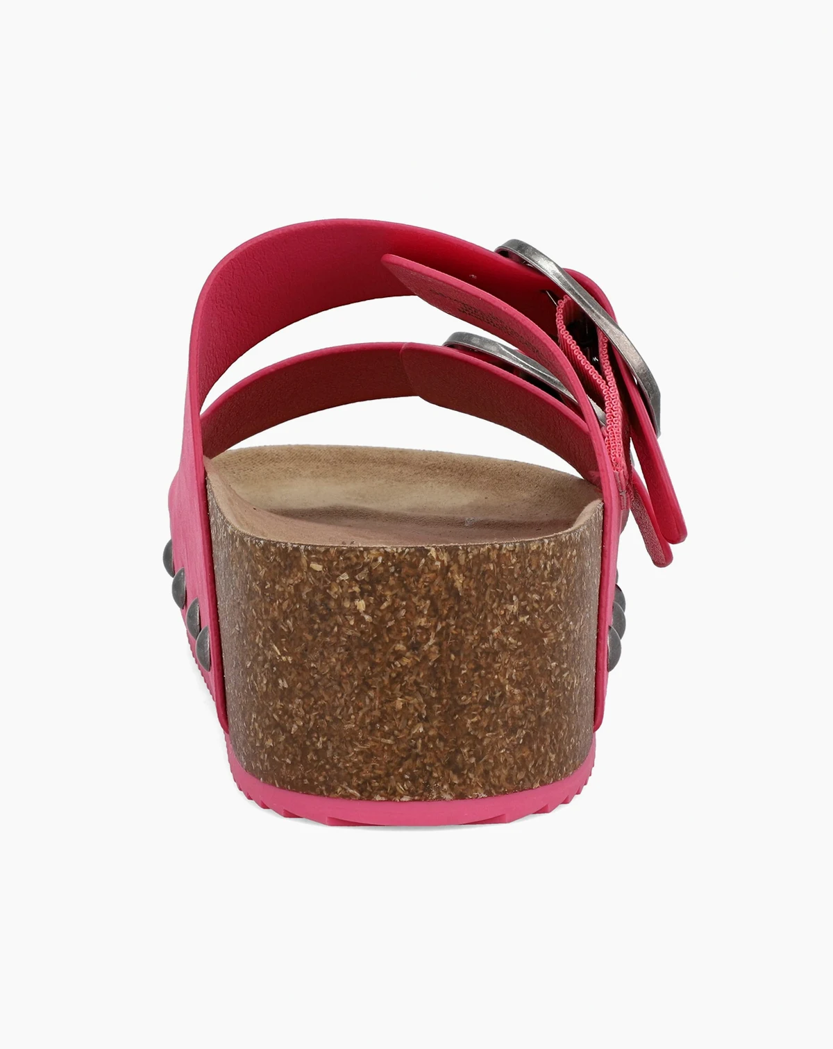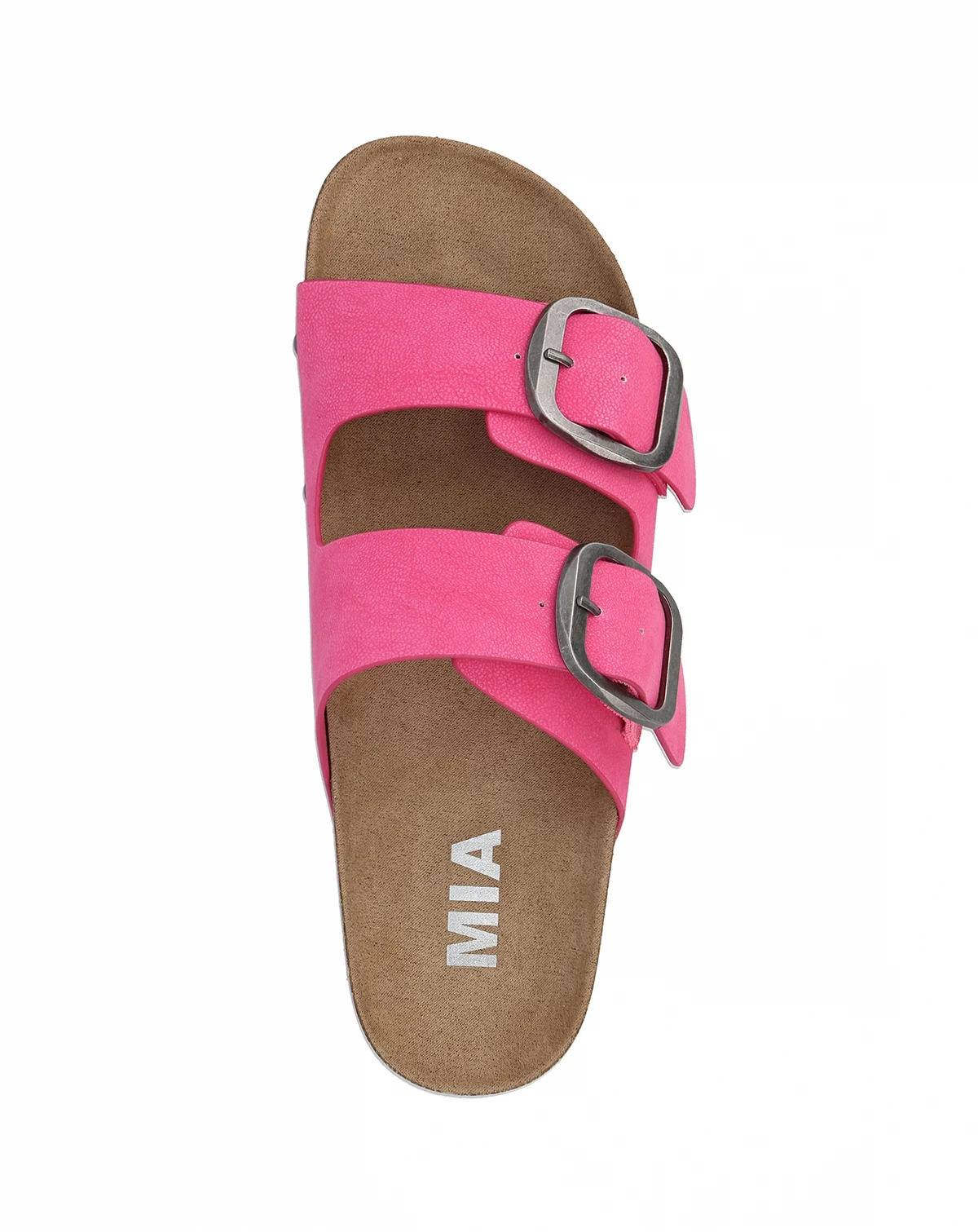 Your platform sandal collection just got an upgrade. The QIANNA is designed with leather material and has two buckle straps for a secure fit. Featuring our MIA signature footbed and finished on a 1.9-inch cork wrapped platform, Qianna is a staple for your spring wardrobe.