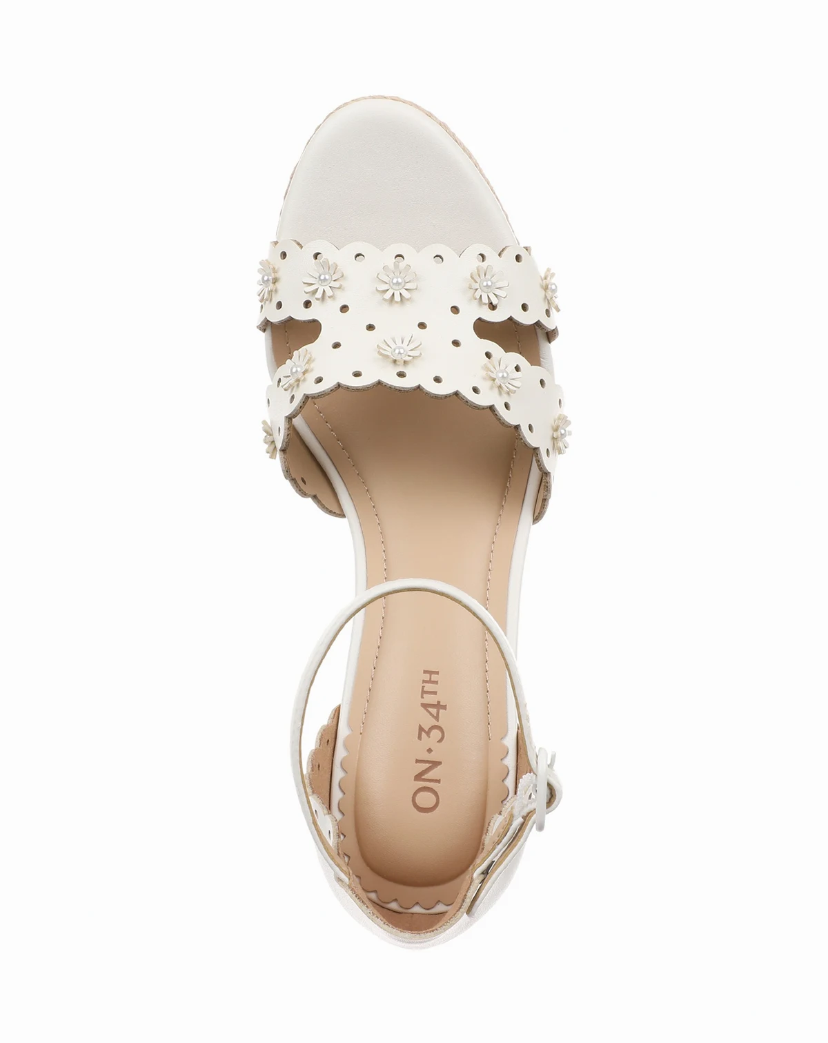 Detailed trim accents a strappy silhouette over espadrille wedges adding textured dimension to a dressy lift in the Theodoree sandals from On 34th.