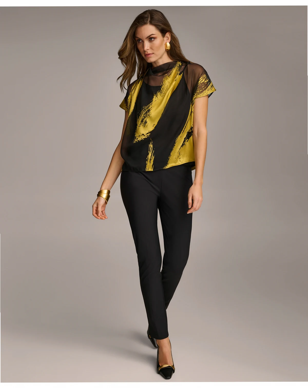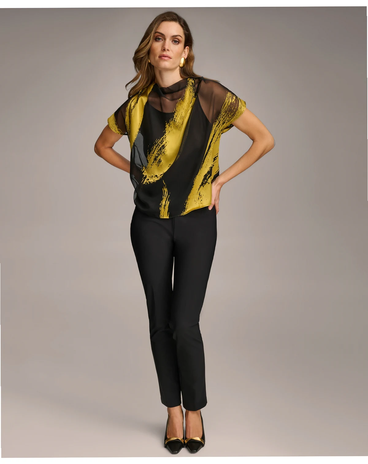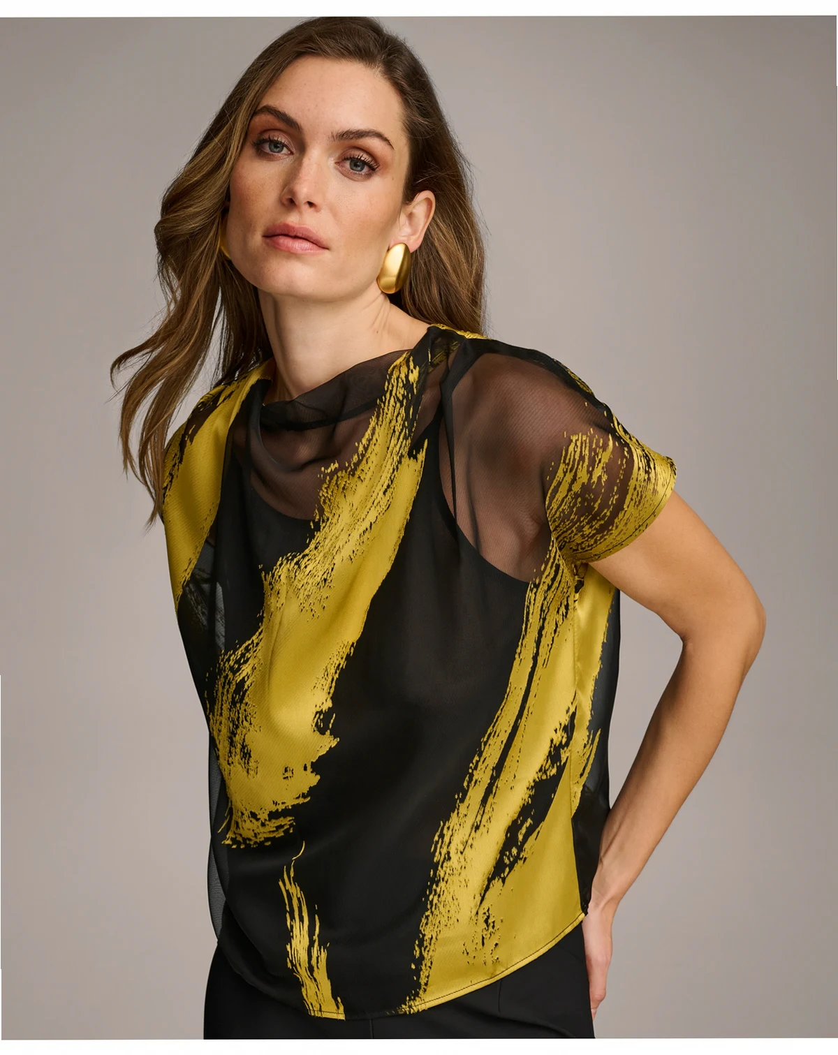 Embrace subtle transparency with this women's printed sheer top with a camisole lining from Donna Karan, a playful but elegant piece for your wardrobe.