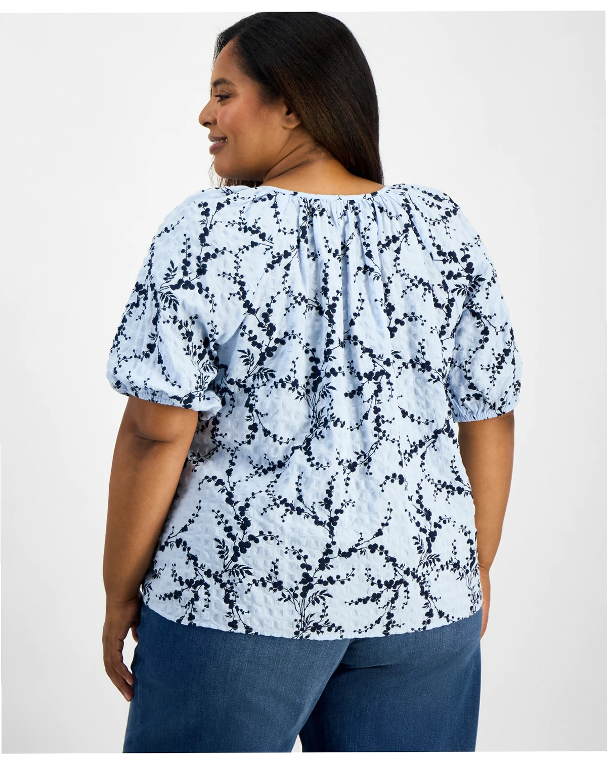 Look pretty in petals with this puff-sleeve plus size top from Style & Co®.