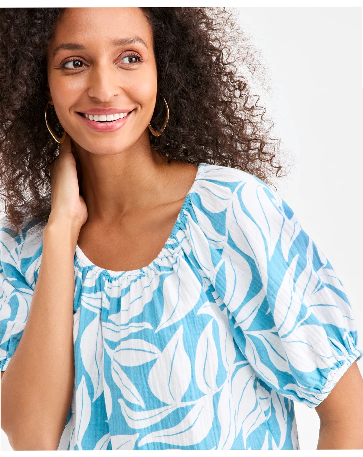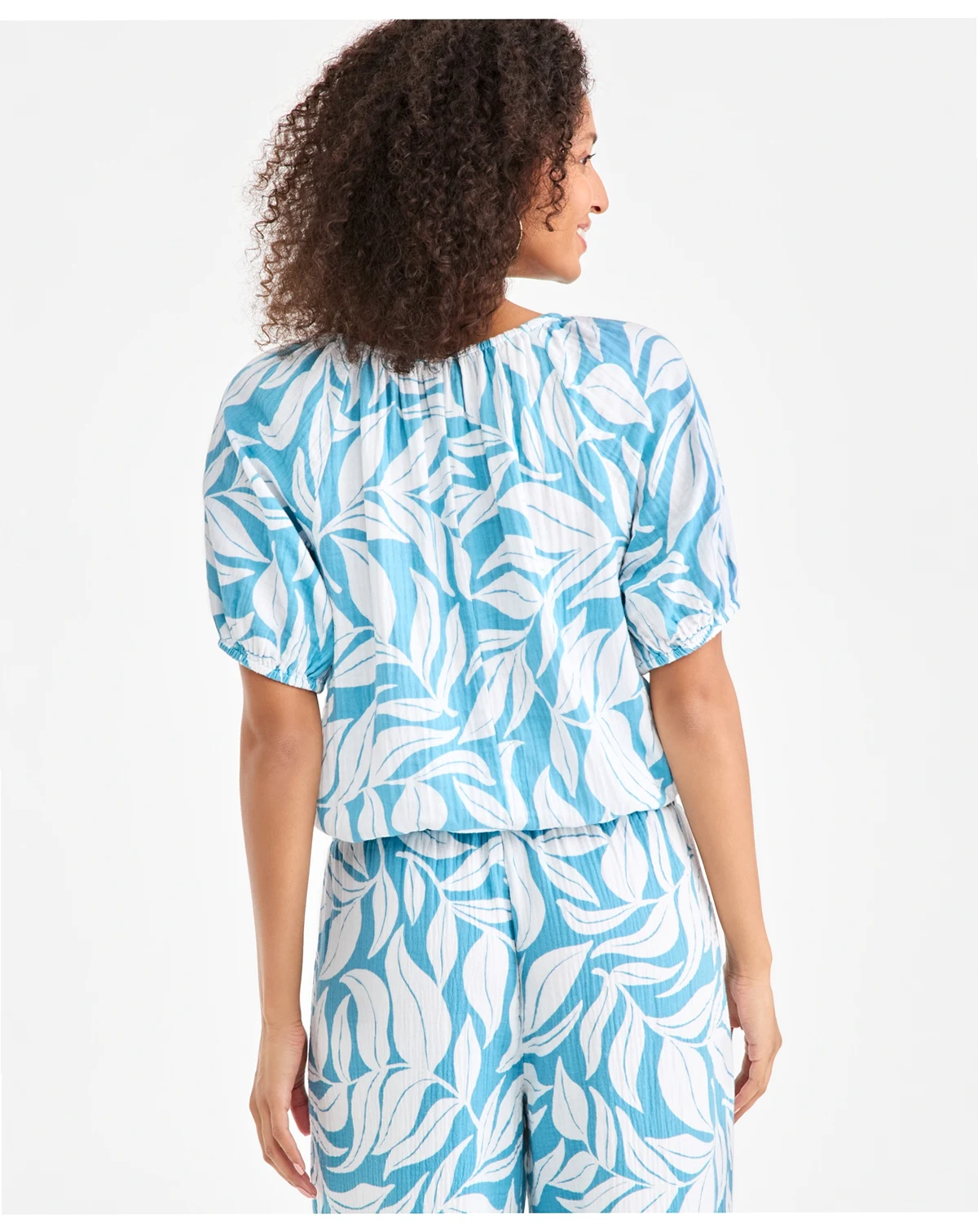 Petite Short-Sleeve Print Gauze Bubble Top, Macy's Exclusive