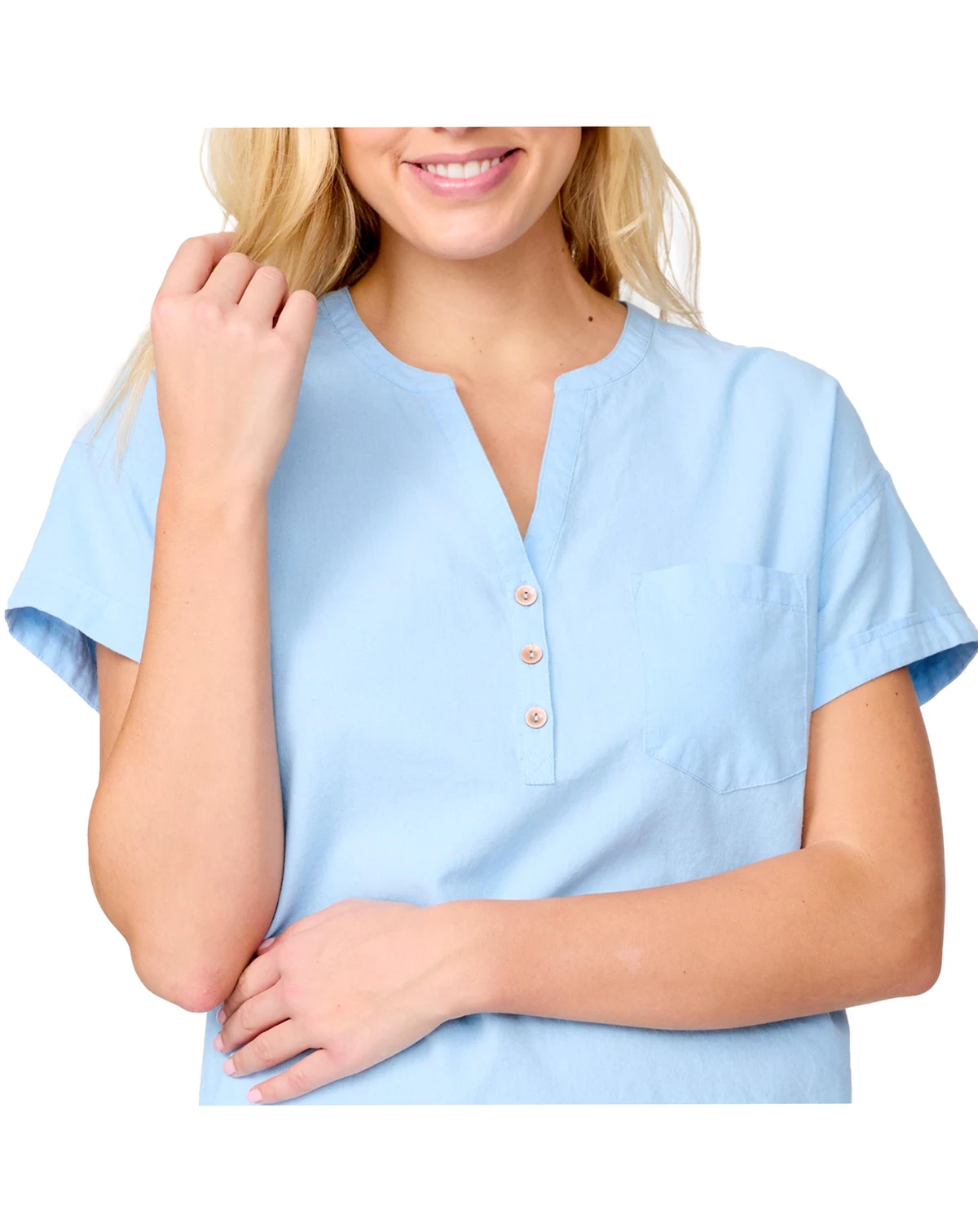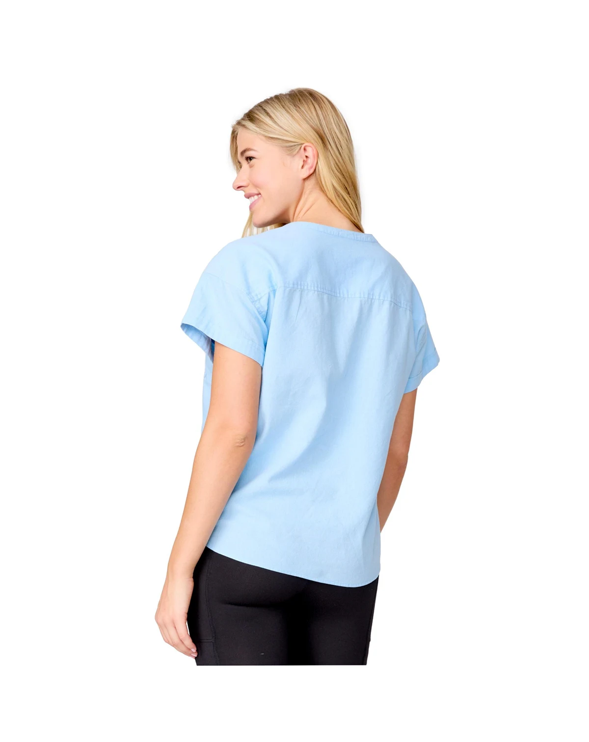 Meet your warm-weather essential! This cotton-linen blend shirt with pastel stripes is a wardrobe refresh. V-neckline and button placket add refinement, while cuffed sleeves keep it relaxed. Perfect for brunch or getaways. Machine washable for hassle-free care. Stay cool, comfortable, and stylish.