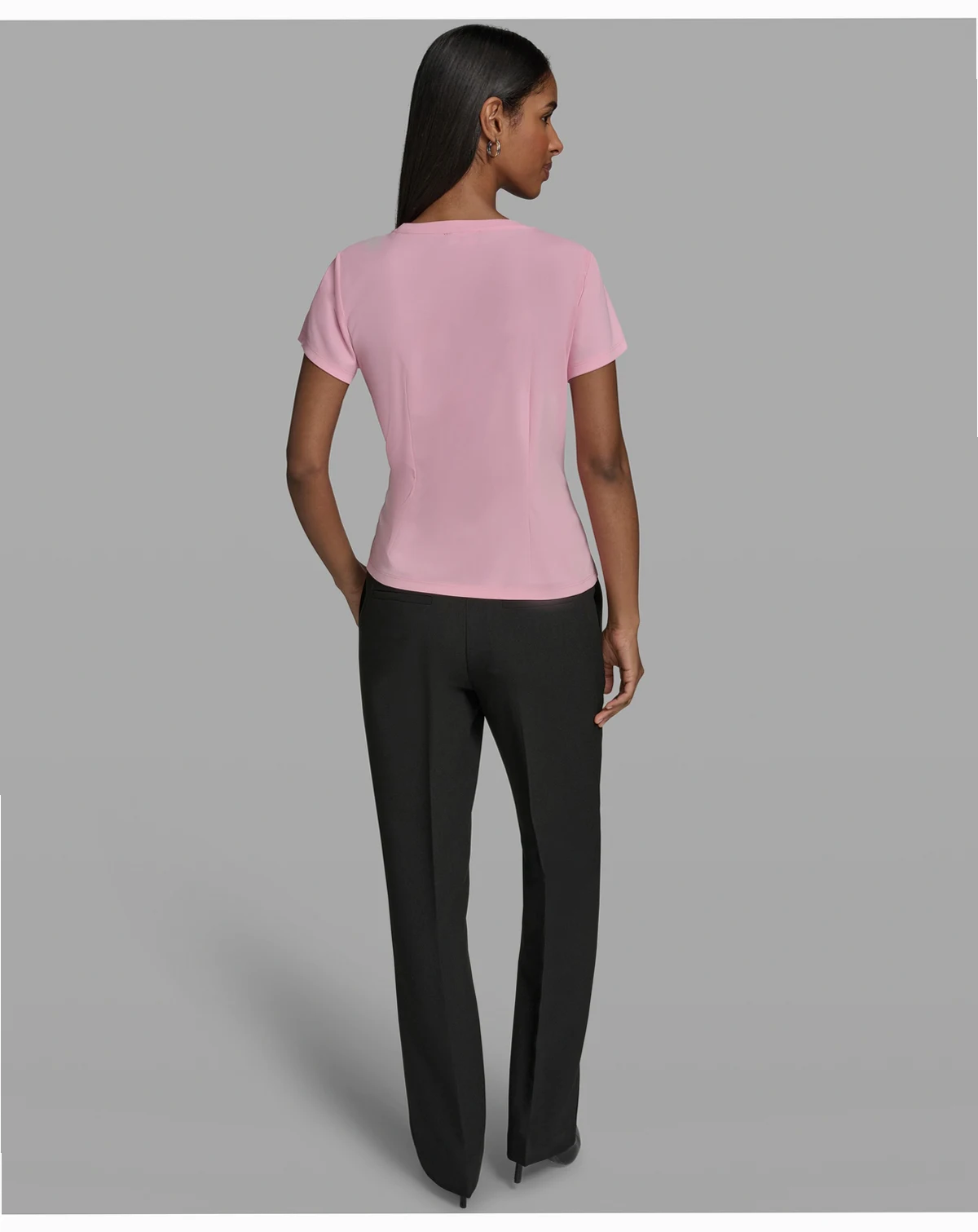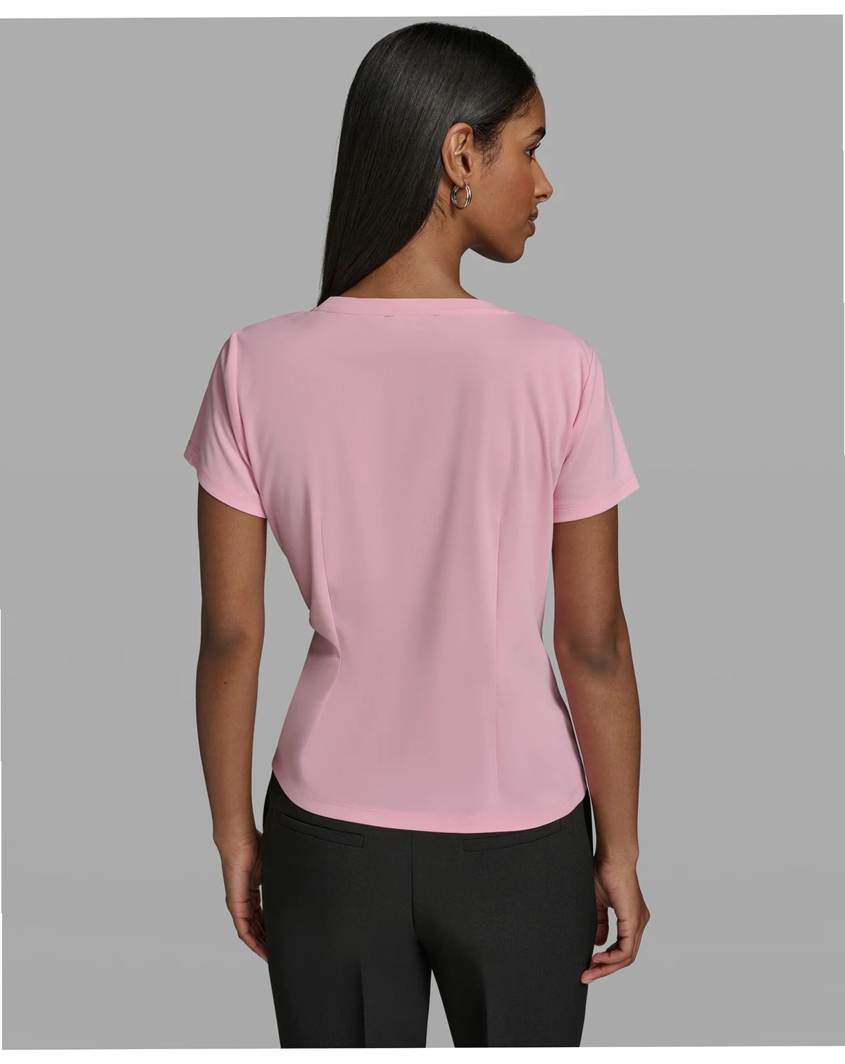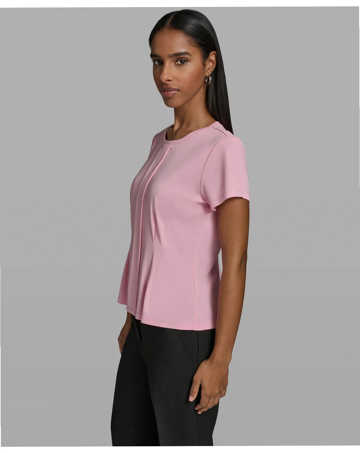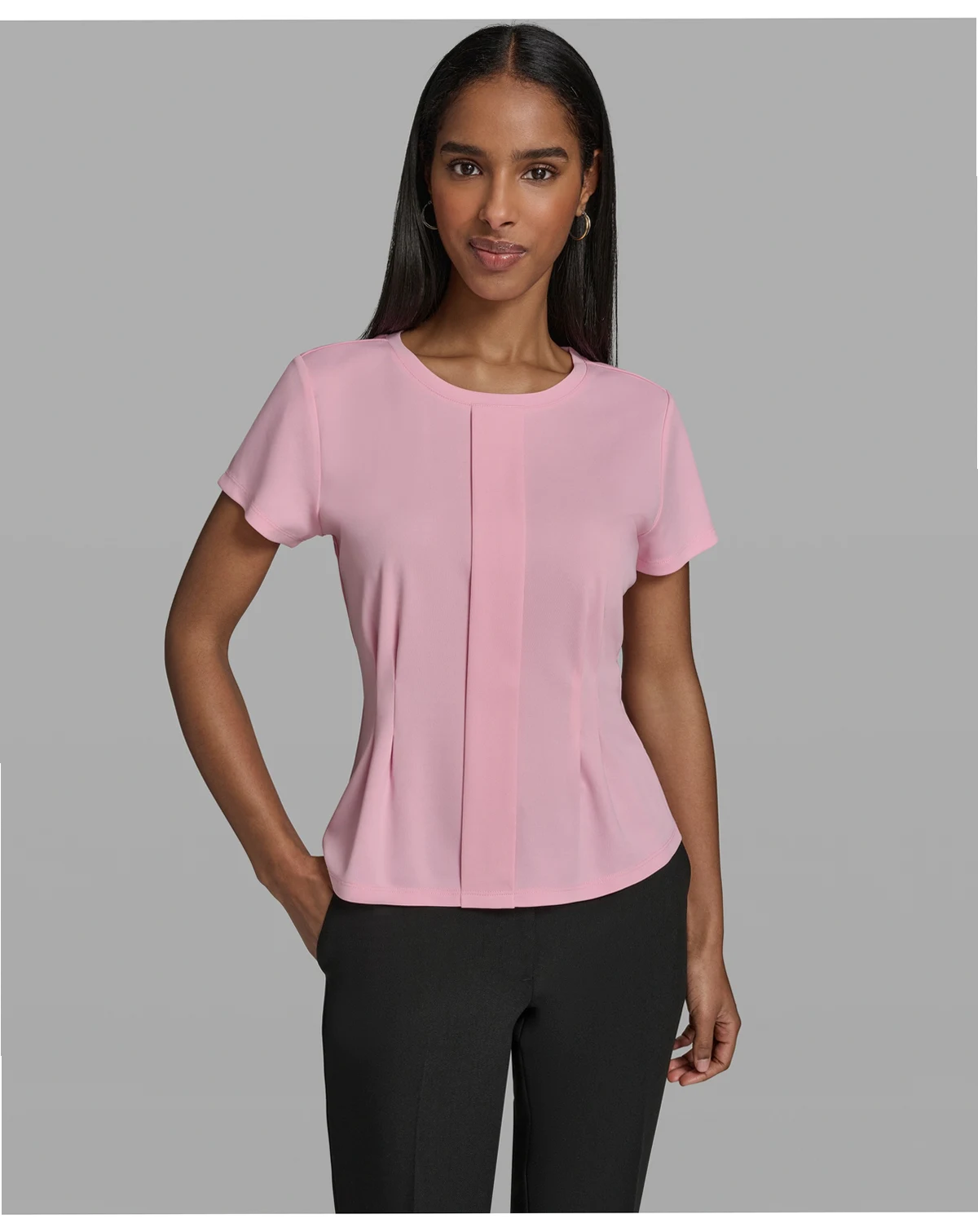 Bring an effortless style to your everyday wardrobe with this short-sleeve blouse from KARL LAGERFELD PARIS, designed with a crewneck and pull-on construction for easy wear. Hitting at the hips, this versatile piece delivers comfort and polish in one streamlined design.