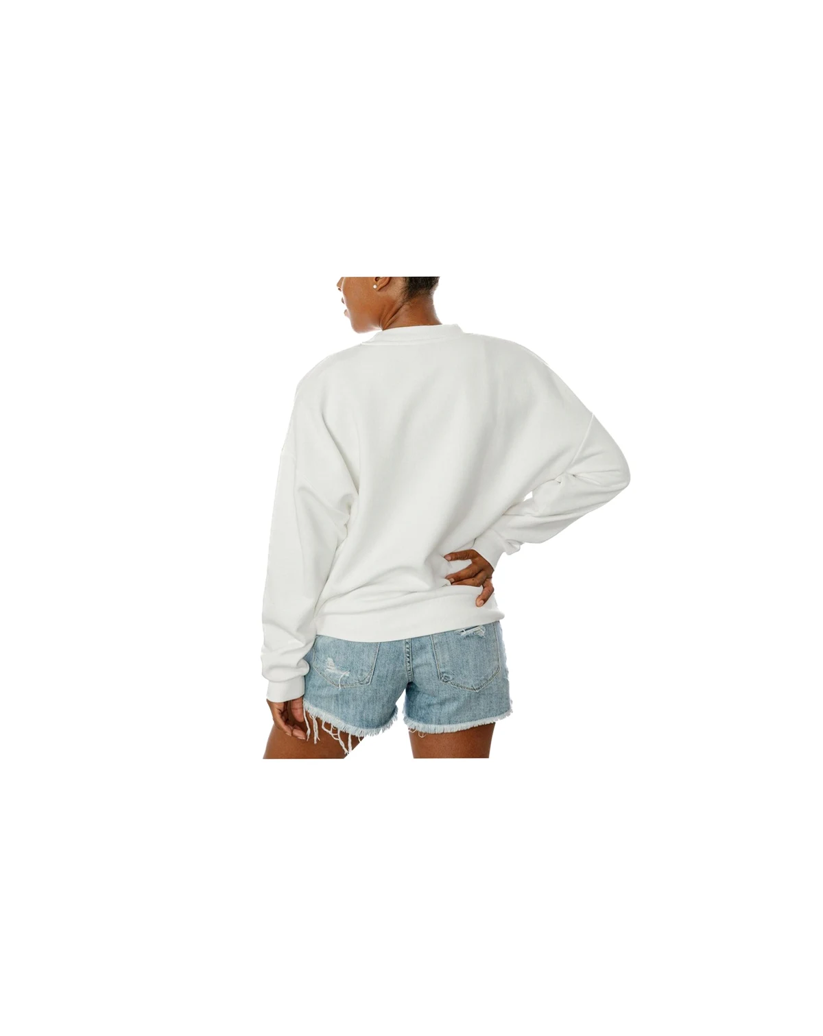 The Women's Gameday Couture White Denver Broncos Sunday Drives Oversized Crewneck Pullover Sweatshirt is the perfect way to show your support for the Denver Broncos. This oversized sweatshirt is perfect for mild conditions. screen printed graphics feature the Denver Broncos logo and wordmark, letting you showcase your team spirit in style. Whether you're cheering on the Broncos at the stadium or relaxing at home, this sweatshirt will keep you comfortable and stylish.