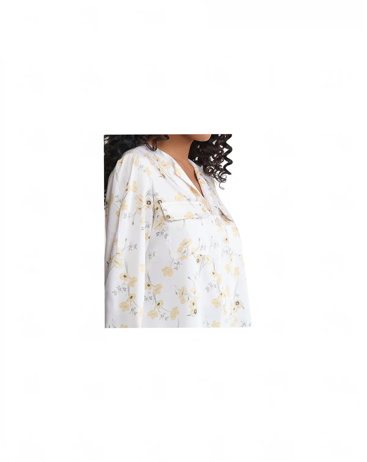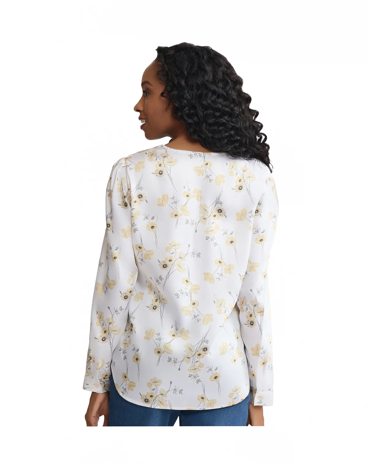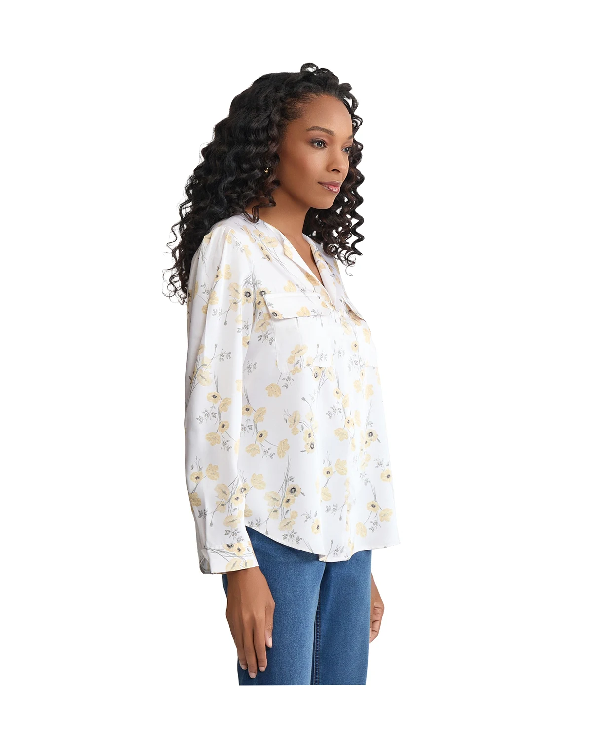 Blend utility with style in this printed twill blouse from Jones New York, featuring functional pockets. A V-neck and long sleeves create a sophisticated, practical look.