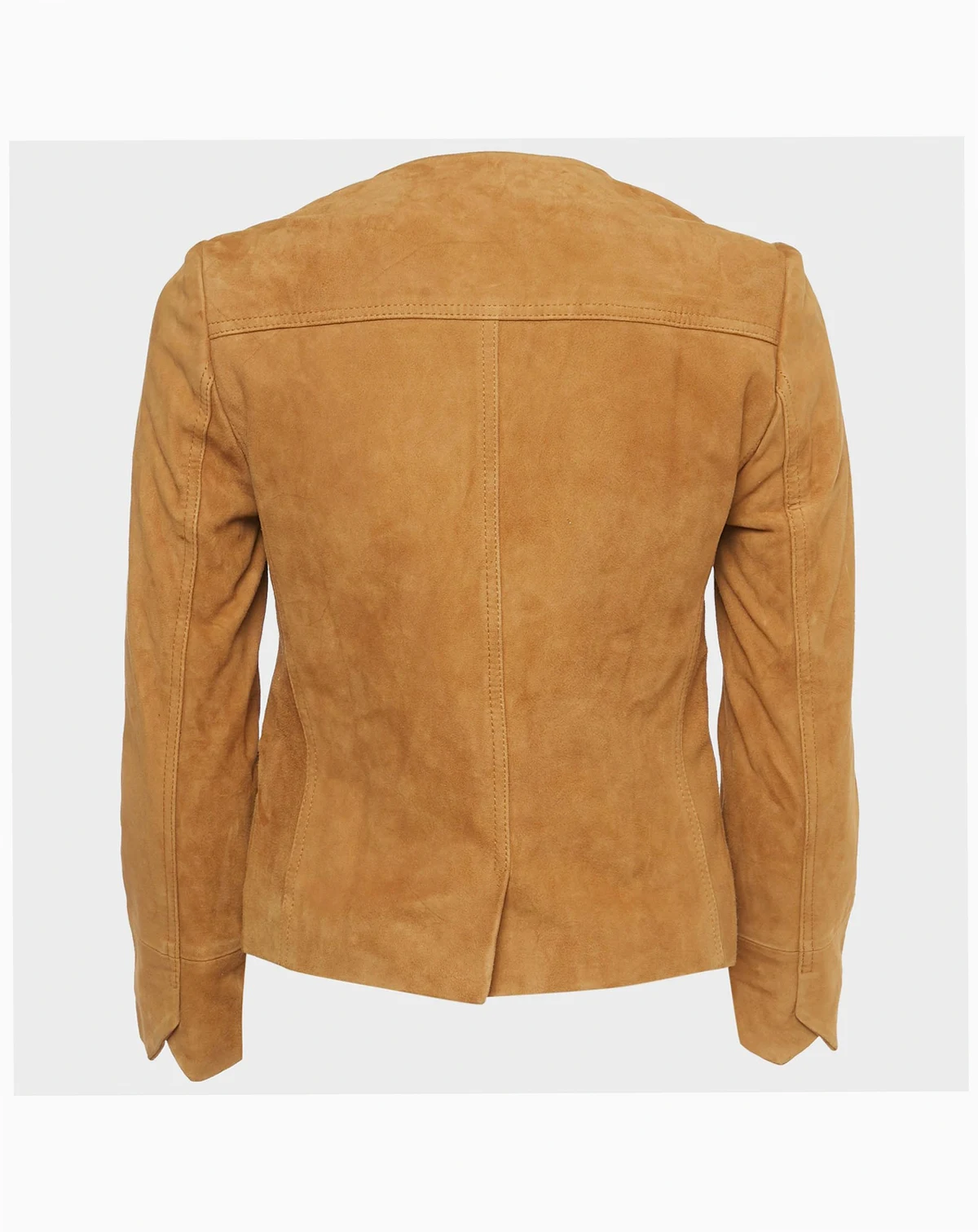 Women's Brown Suede Round Neck Jacket