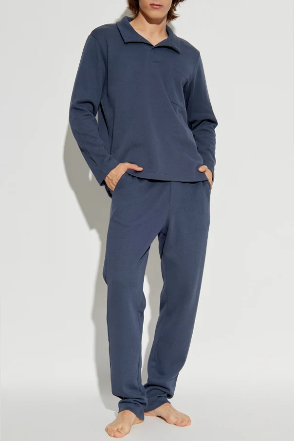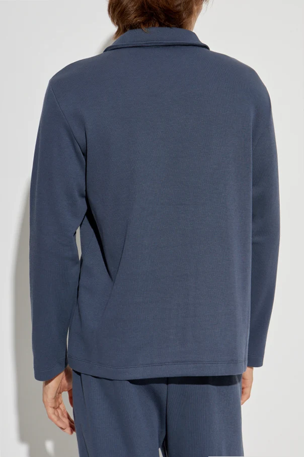 This navy long-sleeve T-shirt with an open polo collar by Hanro is a testament to timeless sophistication. Crafted from luxurious cotton with a subtle, tactile texture, the fabric ensures both elegance and exceptional comfort. The silhouette is gently relaxed, offering effortless ease while maintaining a refined presence.