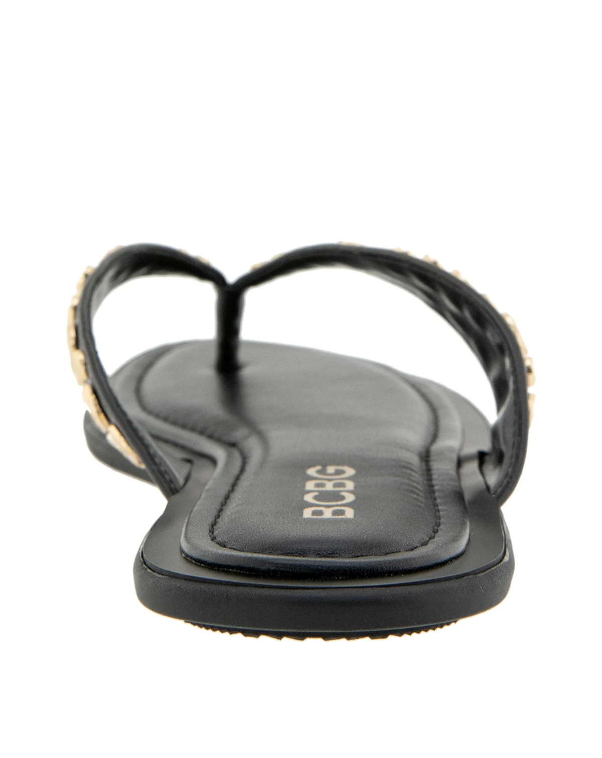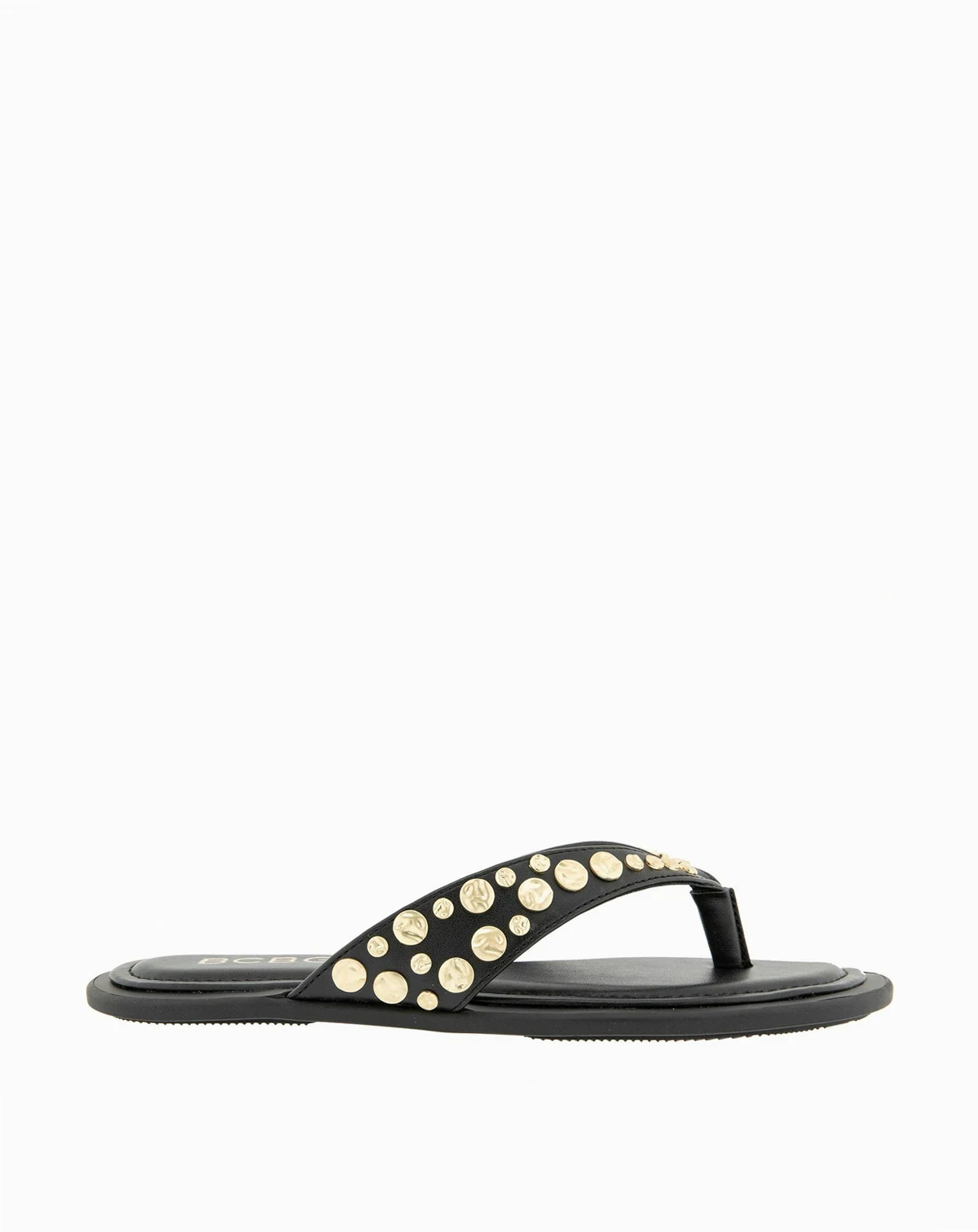 the BCBG Zelilya is an elevated flip-flop sandal with a cushioned footbed, and subtle flat stud detailing on the straps, adding a touch of polished edge to relaxed, sun ready style.