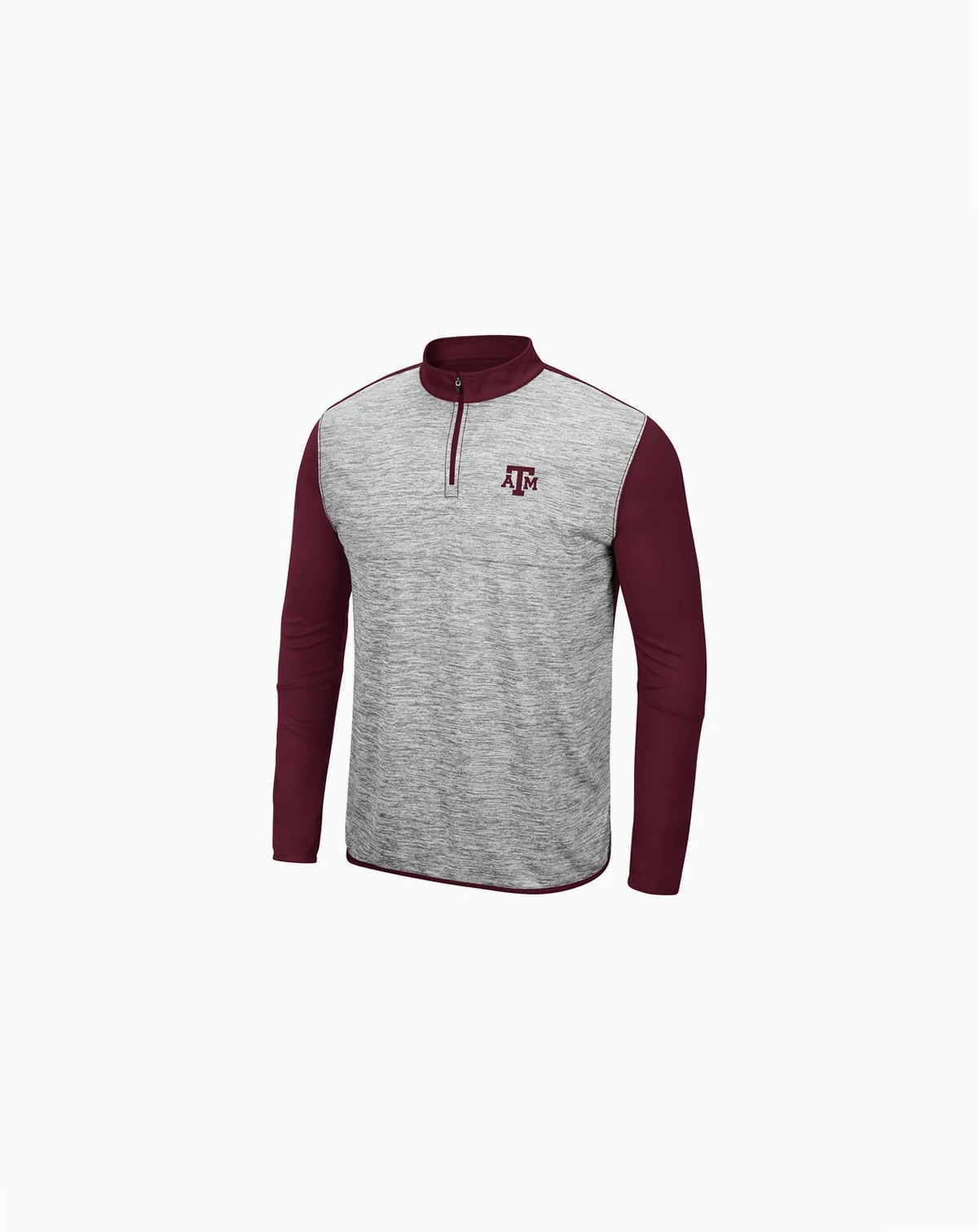 Create an ensemble well suited to your Texas A M Aggies pride with this Prospect jacket. Colosseum has crafted a lightweight jacket that's great as a layering piece or for keeping warm on slightly chilly days. Its subtle Texas A M Aggies graphics are enhanced by the contrasting sleeves, back and collar, allowing this quarter-zip to be paired with other team apparel easily.