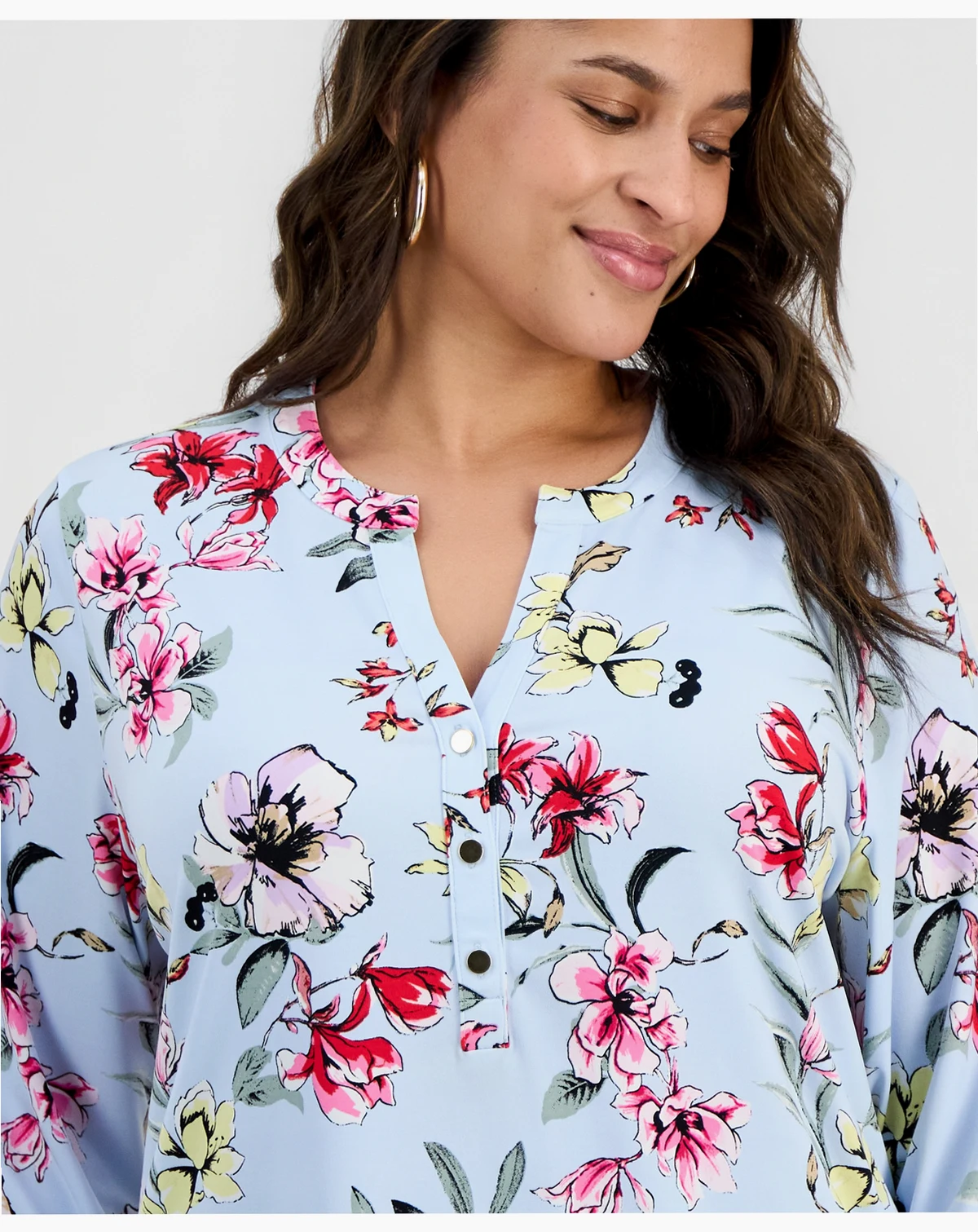 Casual style can still feel polished with this plus size top from I.N.C. International Concepts. Its split neckline features button closures for an adjustable fit. ABOUT THE BRAND: I.N.C. is inspired by fabulous women—always bold, confident, and stylish.