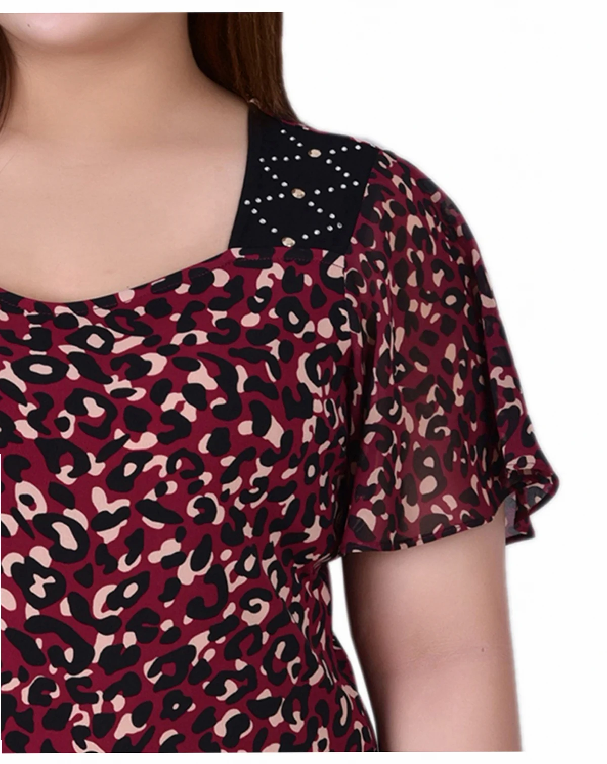 Body: 95% polyester, 5% spandex; chiffon: 100% polyester