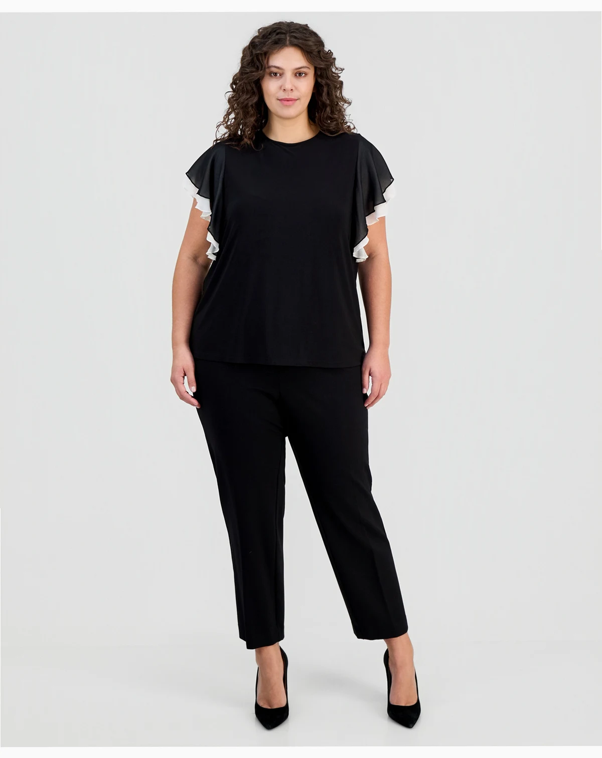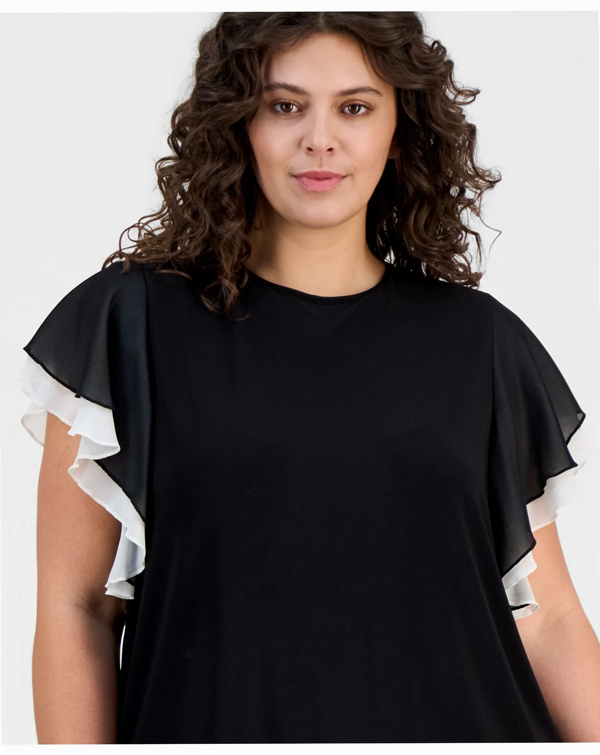 Plus Size Layered Flutter-Sleeve Top