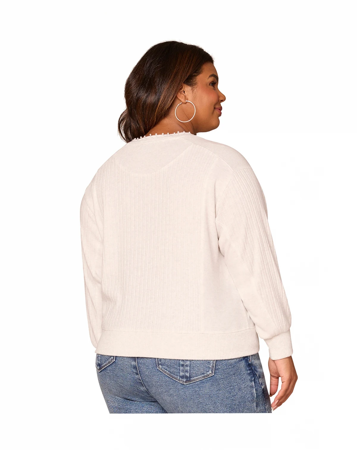 Delicate embroidered pearl details add a refined, textured touch that elevates this Democracy top from simple to polished. Crafted in soft mixed-media knit, it features a relaxed fit, classic long sleeves, and a crew neck for comfortable, stylish wear.