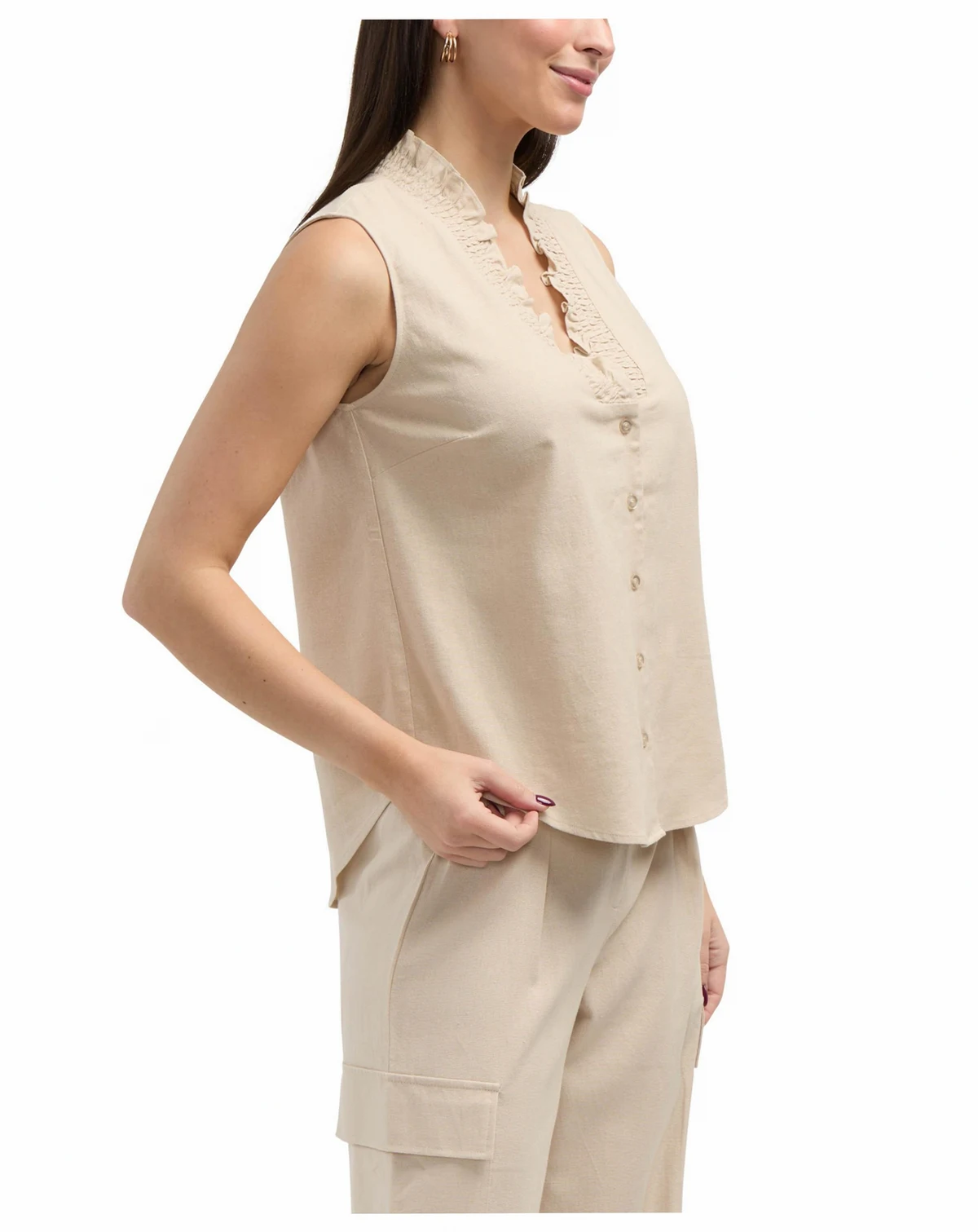 Women's Sleeveless Ruffle Neckline Top